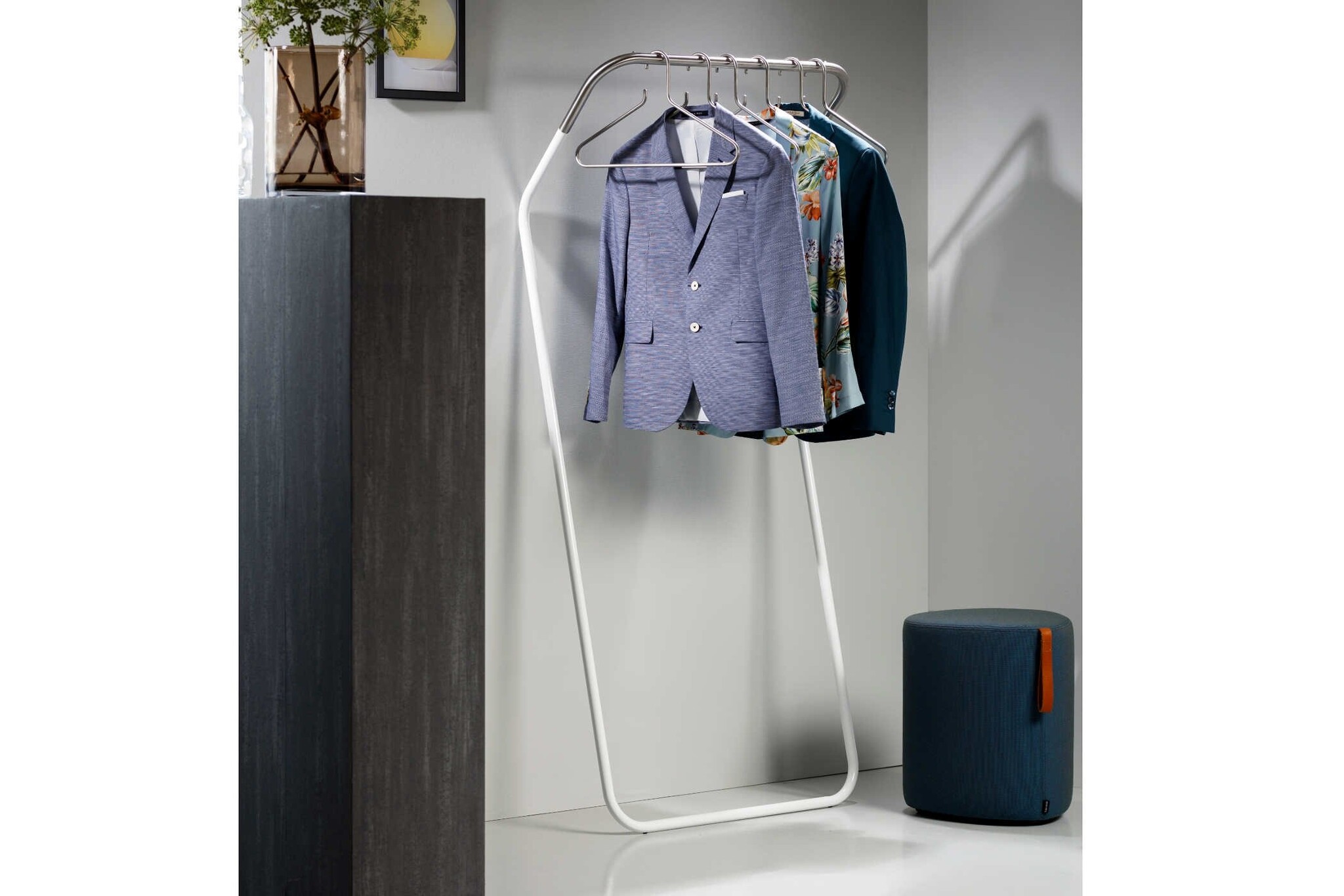 Cascando Lean On heeft een eenvoudige vorm en een strakke afwerking. Het ontwerp van Van de Water neemt weinig ruimte in beslag en is speciaal ontworpen om tegen de muur te plaatsen. Het rek is geschikt voor speciale Lean On kledinghangers. De kledinghangers zijn van roestvrij staal en hebben een afmeting van B 42 cm x H 26 cm.
