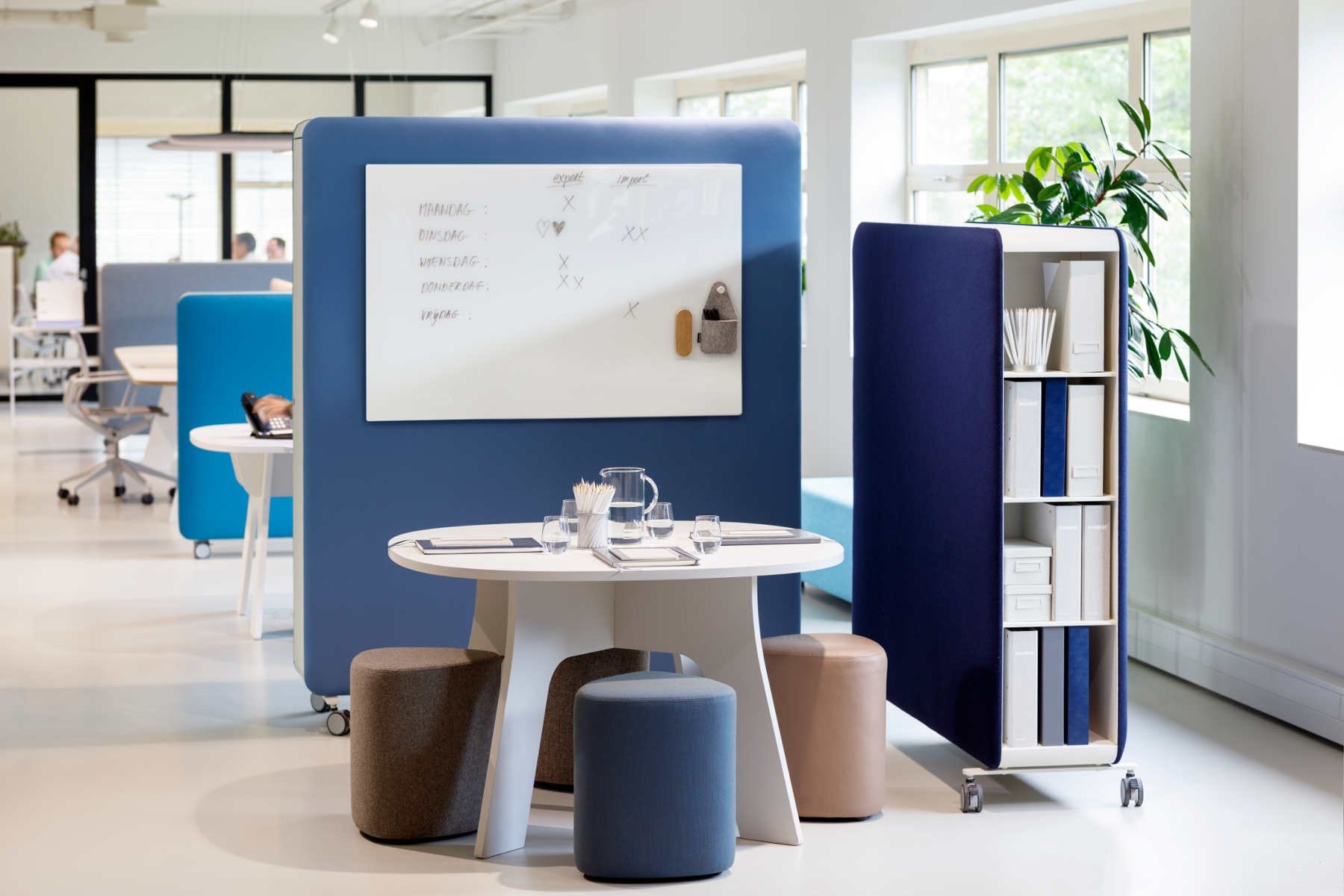 Mooie en praktische accessoire voor op kantoor, mede door de opbergruimte die de scheidingswand biedt.
