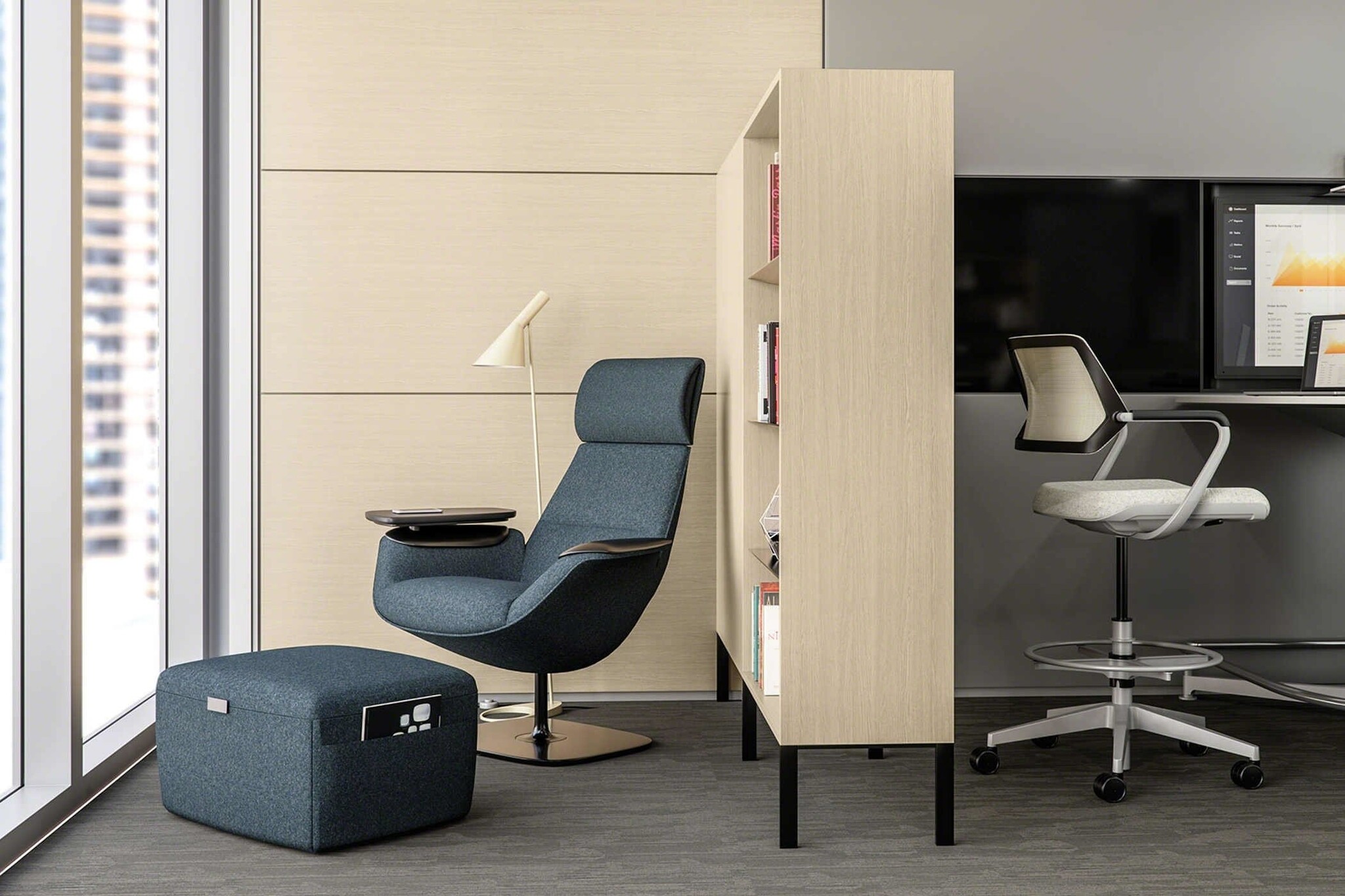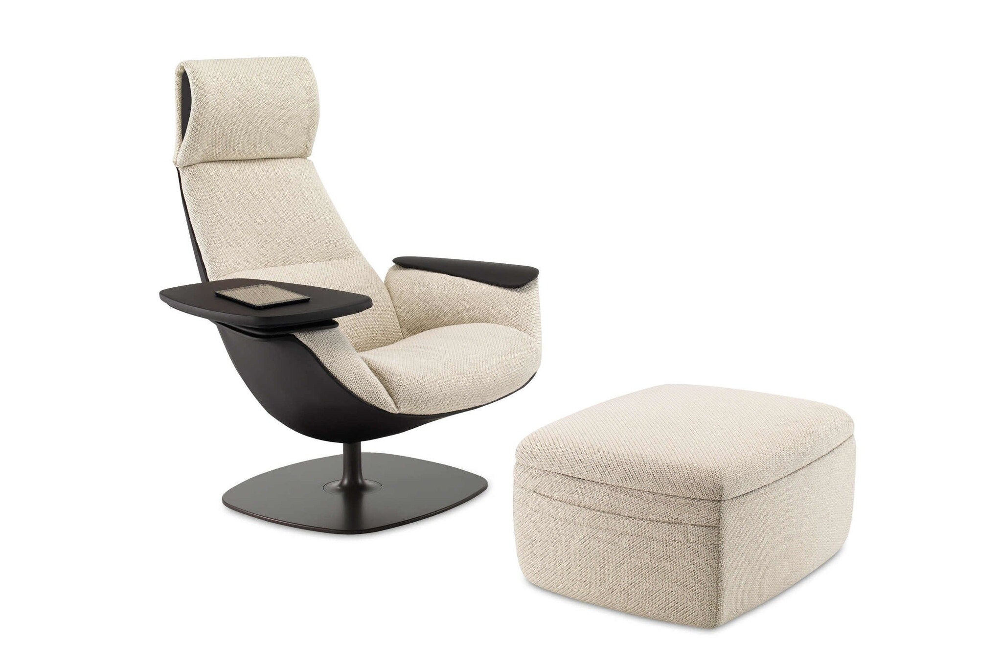 De Coalesse Massaud Lounge Seating is een fauteuil en leverbaar in 2 uitvoeringen. In de ene zit u uiterst comfortabel, zeker met de bijpassende en functionele poef. In de andere fauteuil kunt u, vanwege het handige draaibare schrijfblad, ook aan werken. Oplaadmogelijkheden zit via het zitkussen voor het opladen van apparaten zonder wirwar van snoeren. Deze Coalesse Massaud Lounge Seating fauteuils zijn mooi te plaatsen in een lounge of wachtruimte.