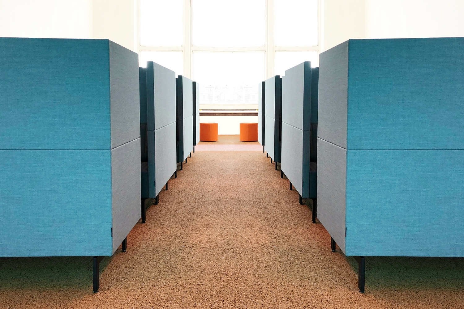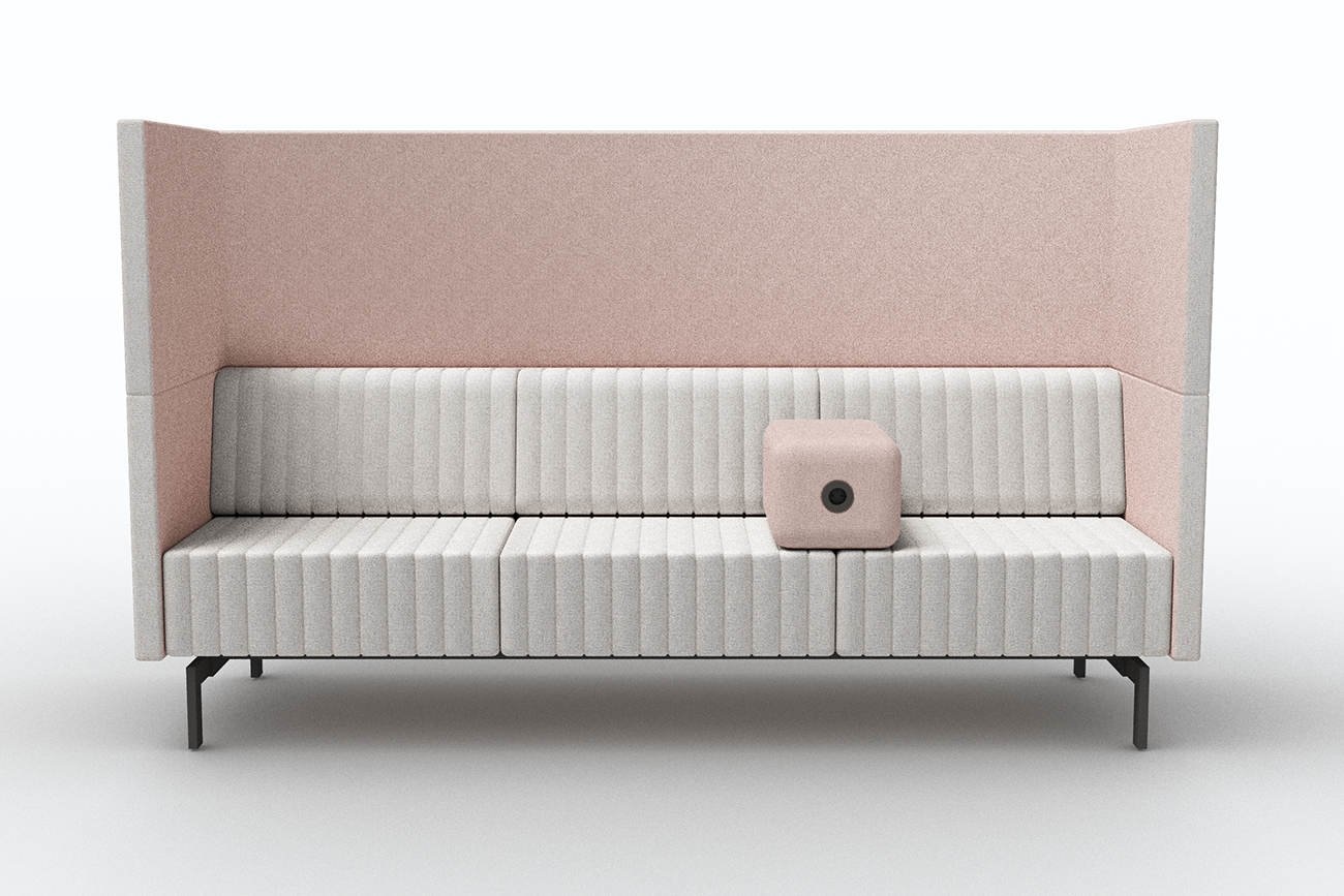 De bank heeft een akoestische wand, wat betekent dat de akoestiek in de ruimte wordt verbeterd, maar ook dat de gebruiker minder geluidsoverlast ervaart.