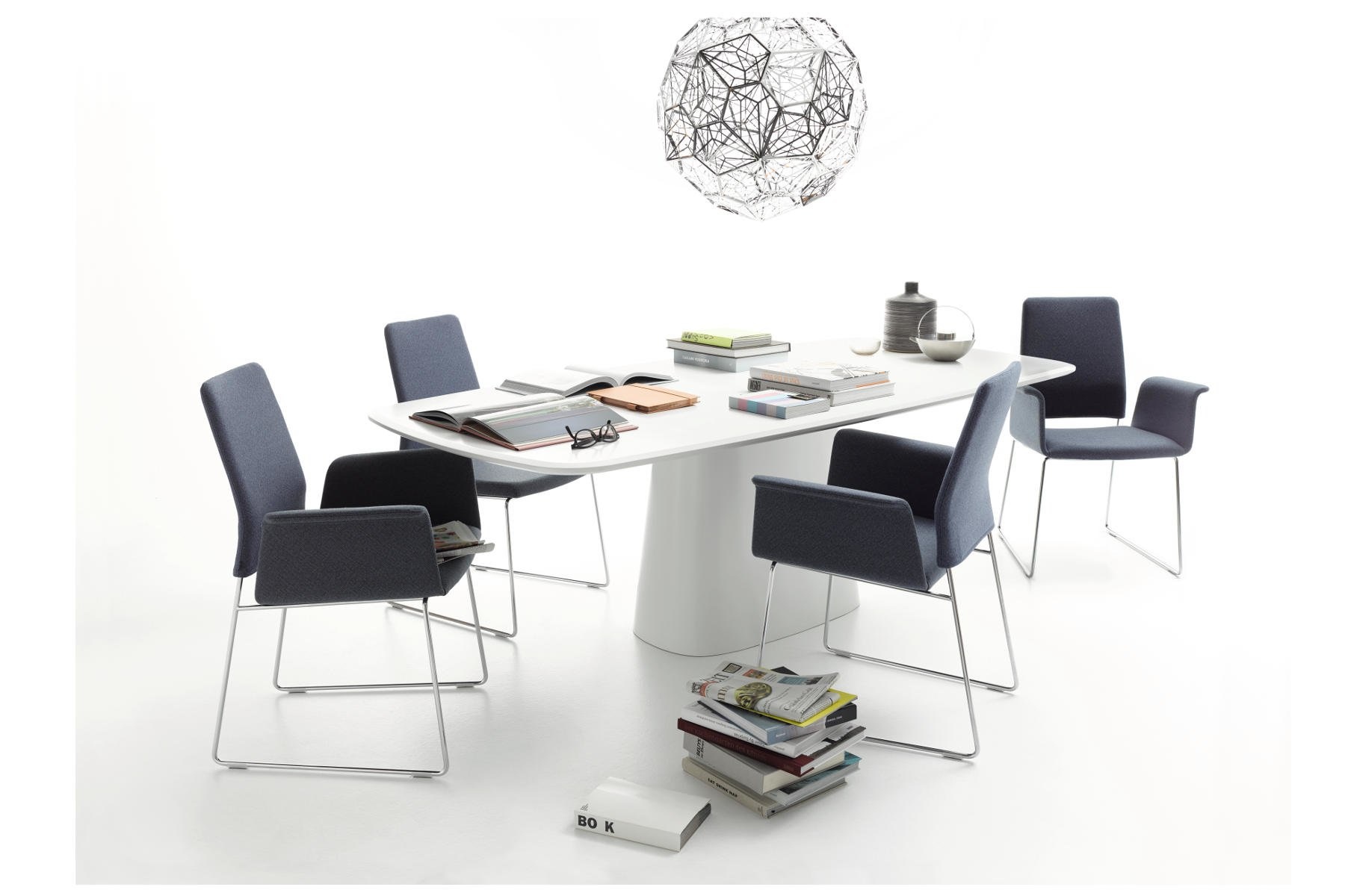 Onderstel als 4-poots metalen onderstel in de COR-lakkleuren en verchroomd mogelijk, of een 5-poots gepolijst aluminium onderstel, verchroomd of in de COR lakkleuren resp volgens RAL. Naar keuze met vilten pootdoppen. 5-poots aluminium onderstel naar keuze ook op rollen mogelijk.