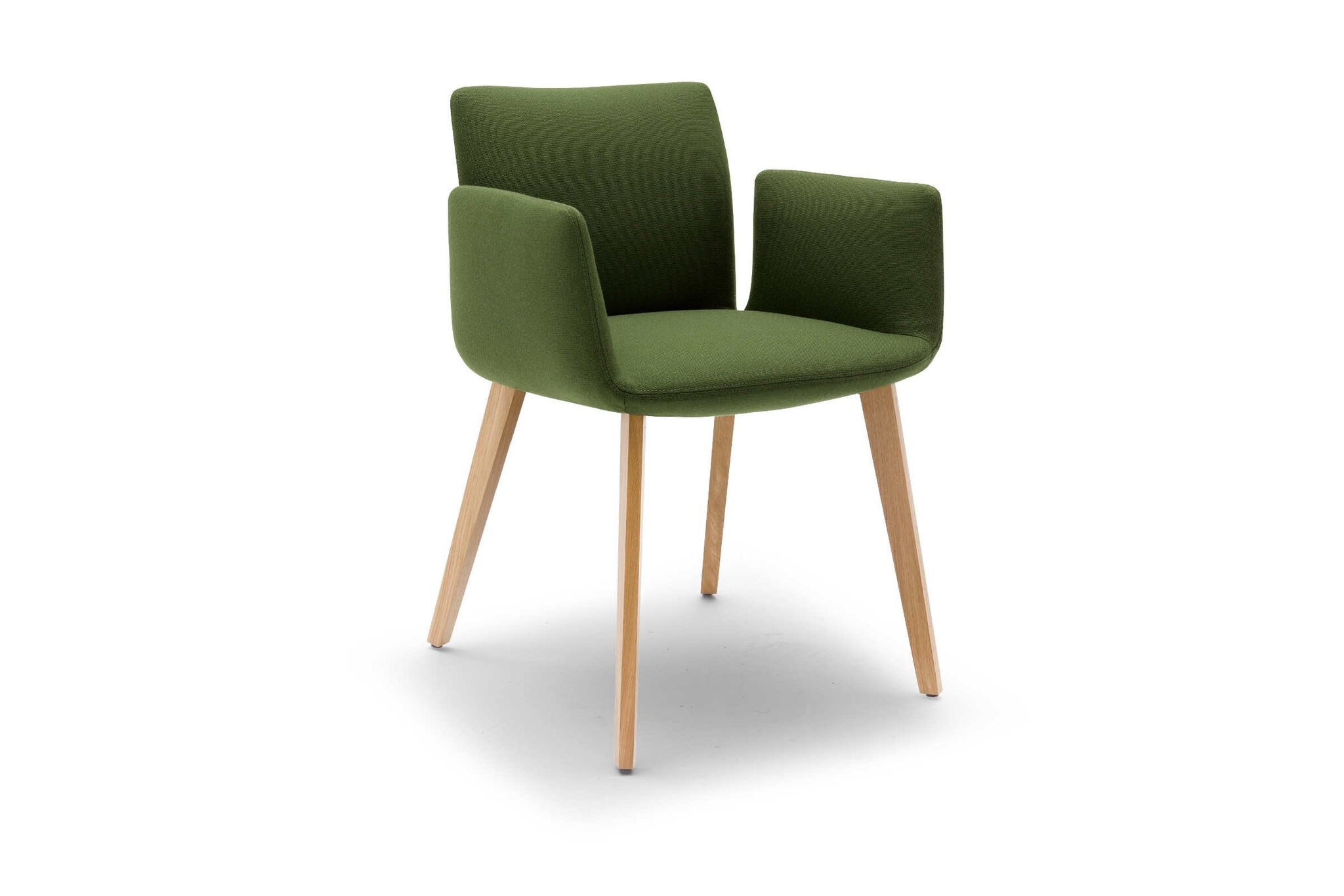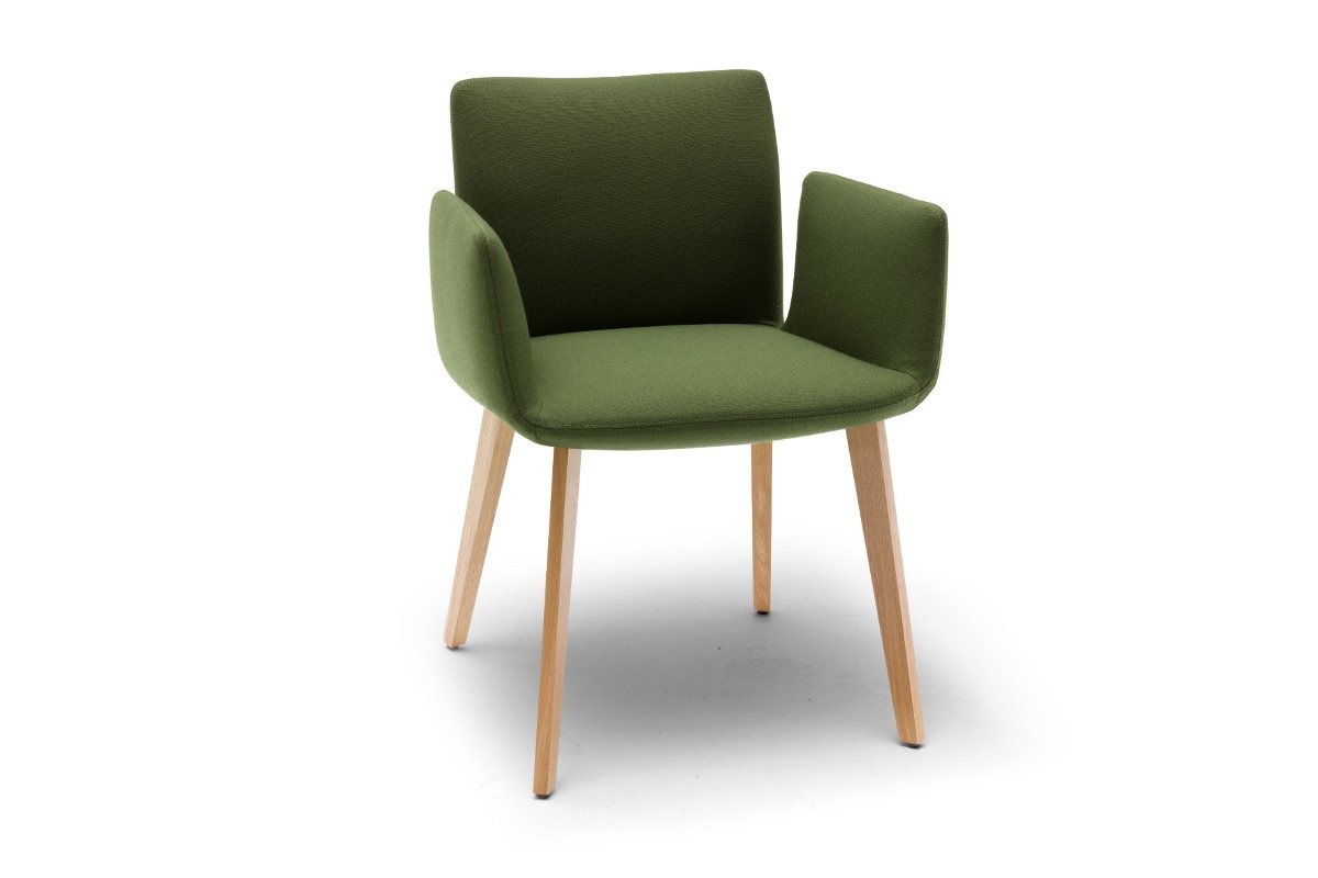 Cor Jalis lage rug modelnummer 585 stoel met 4-poots houten onderstel met armleuningen