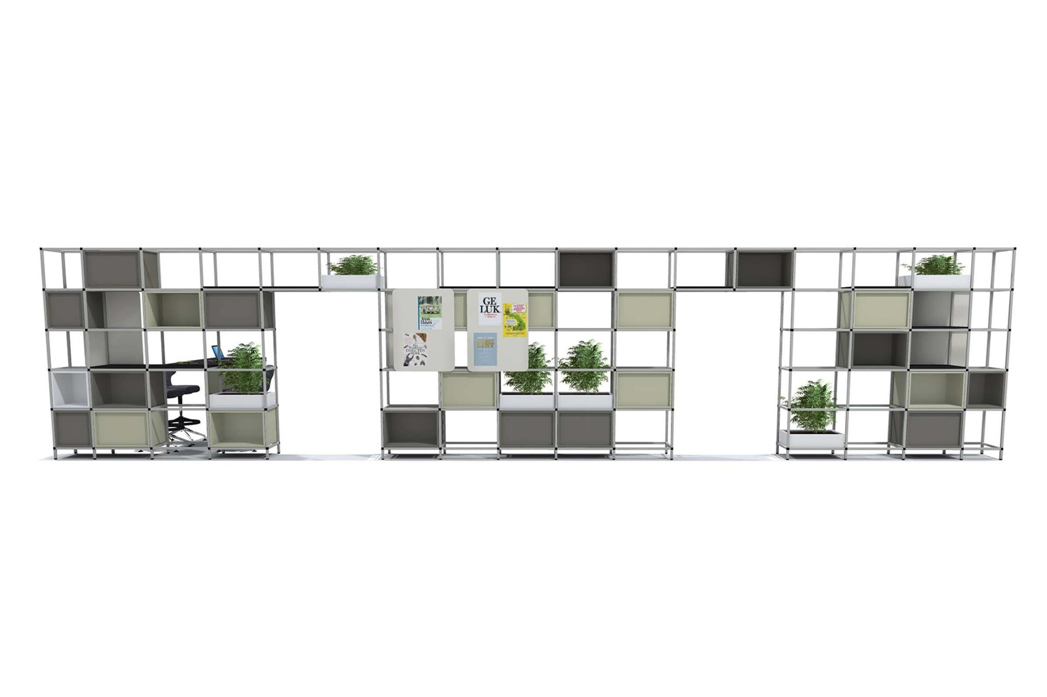 Cowerk Cast kastensysteem is zeer duurzaam: gemaakt van oude tafels en kasten. Dit is een goed voorbeeld van circulairiteit in meubels!Het frame van de Cowerk Cast roomdivider is in te vullen met legborden, boxen en plantenbakken waardoor een meer open of gesloten karakter ontstaat. Met name in open ruimtes is de COwerk Cast© goed toepasbaar als afscheiding van bijvoorbeeld loop- en werkgebieden. Deze roomdivider wordt vaak toegepast met beplanting. Een deel van 130 cm breed is ook op wielen verkrijgbaar zodat er een verrijdbare roomdivider ontstaat.Zo kunt u de kast makkelijk verplaatsen.