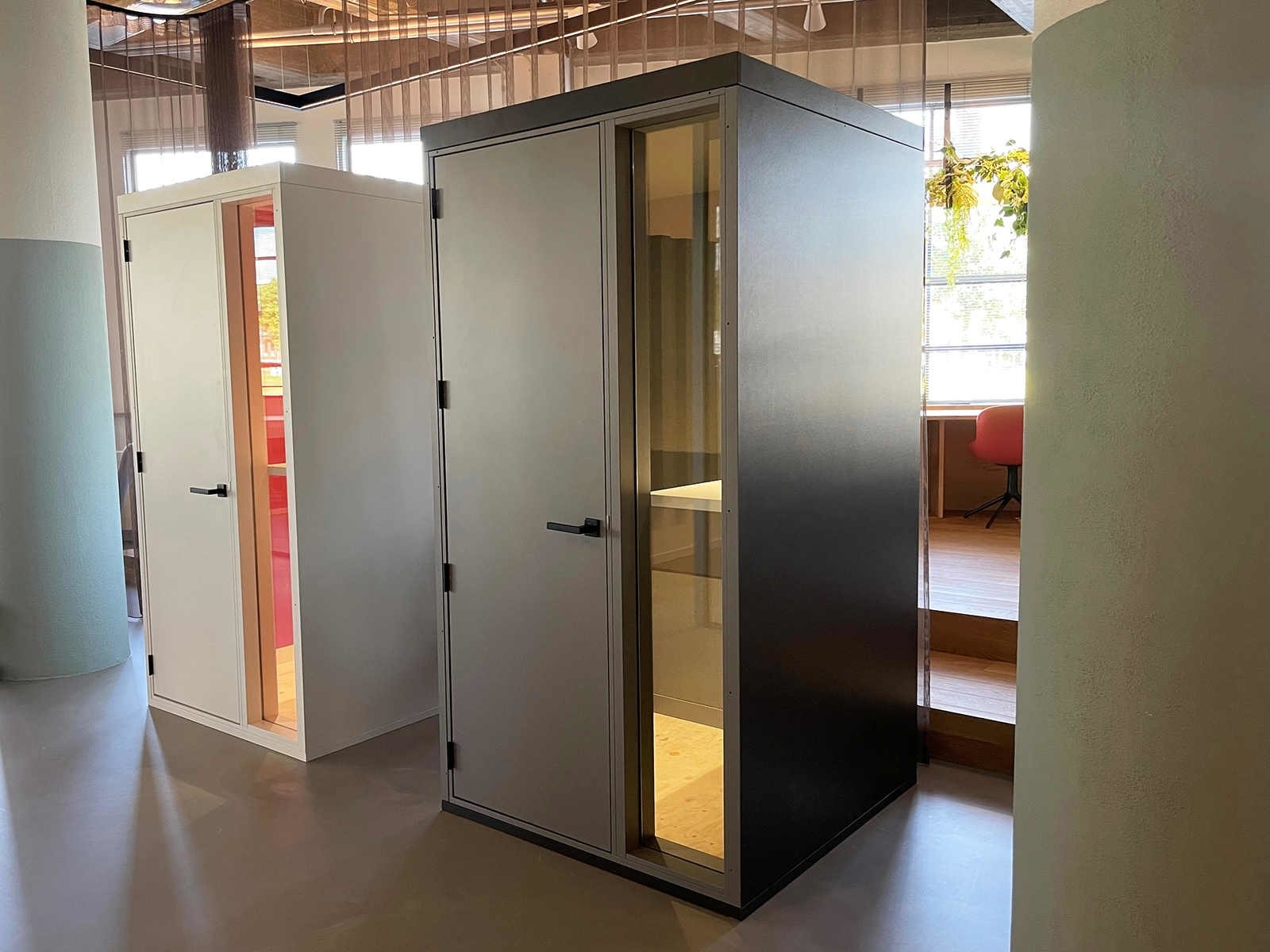 Om ongestoord te bellen of te werken zijn er vele oplossingen. Een akoestische ruimte of belcel, zoals deze COWerk OMO is daar één van.