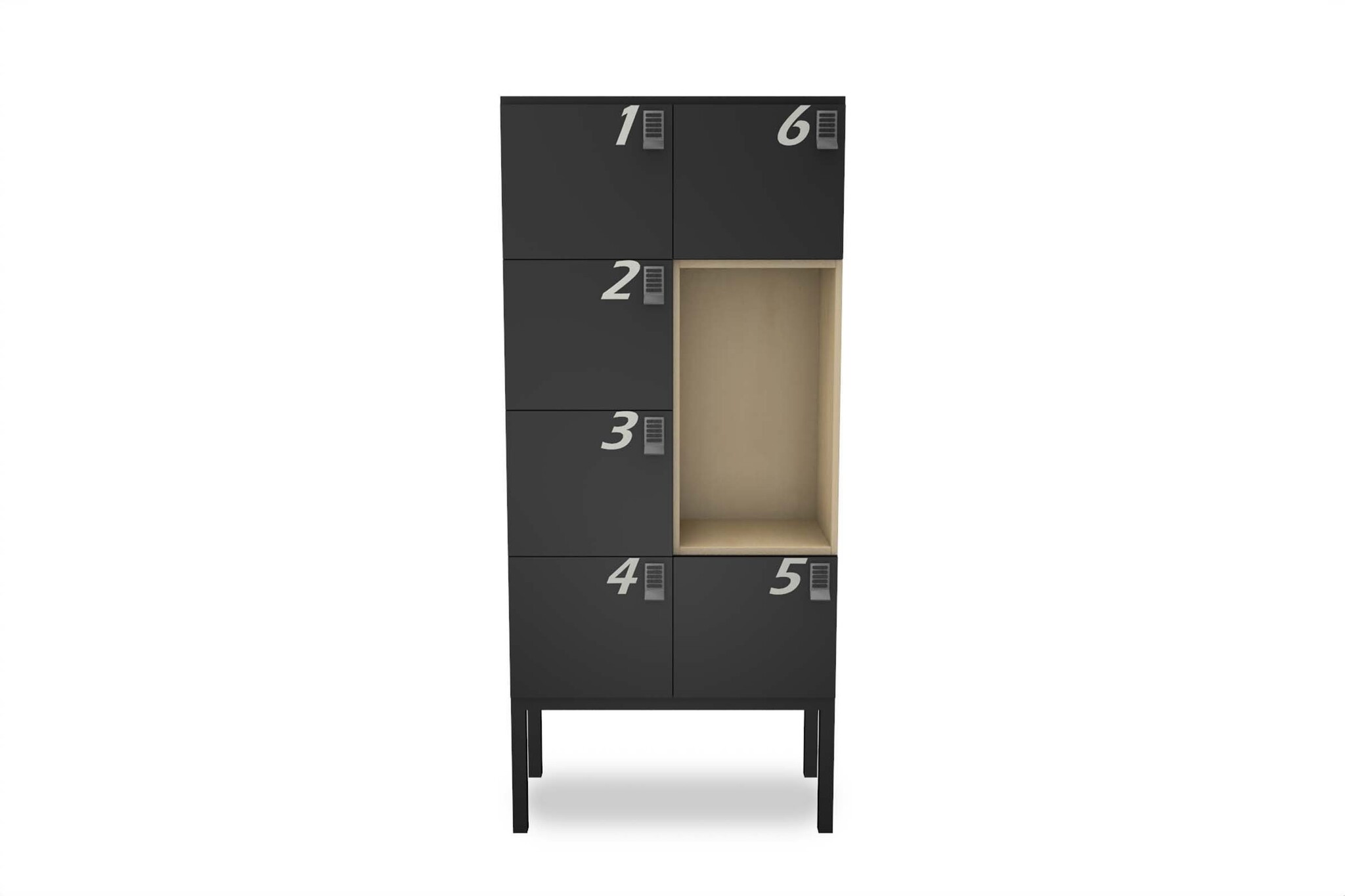 Stackr kast is opgebouwd uit een plint, rompen (met of zonder deurtjes) en een bovendek.