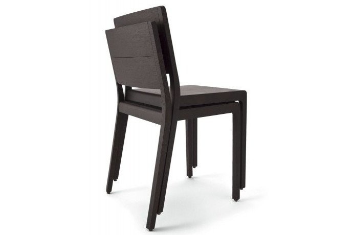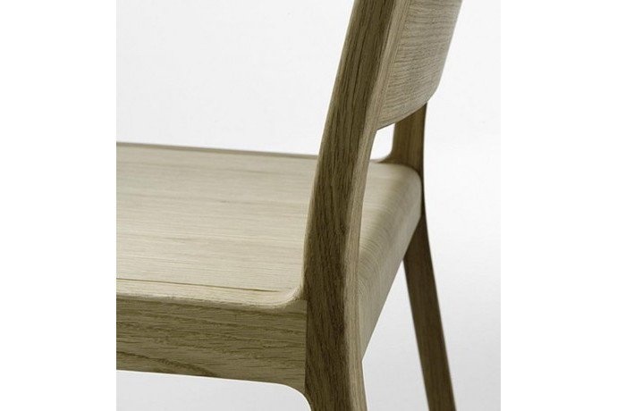 Crassevig Esse, een massief houten stoel met multiplex zitting en eventueel een gestoffeerd paneel. Ontworpen door en de Crassevig Esse is leverbaar als stoel en barkruk. Voor afmetingen en uitvoeringen zie brochure.