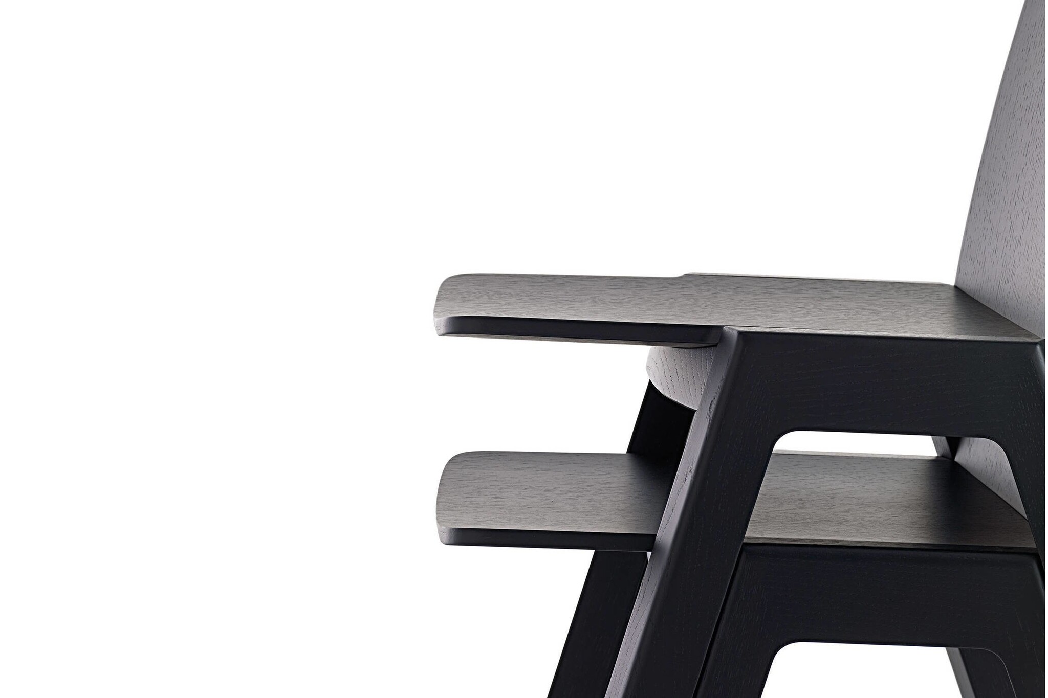 De structuur van de stoel is massief hout en 11 mm dik multiplex in 10 lagen. Ze zijn verkrijgbaar in naturel, gelakt of gelamineerd beuken of eiken. Daarnaast is er ook de mogelijkheid voor een gestoffeerde | gewatteerde zitting. Deze heeft een dikte van 12 mm en is voorzien van de vlamvertragende BS 5852.