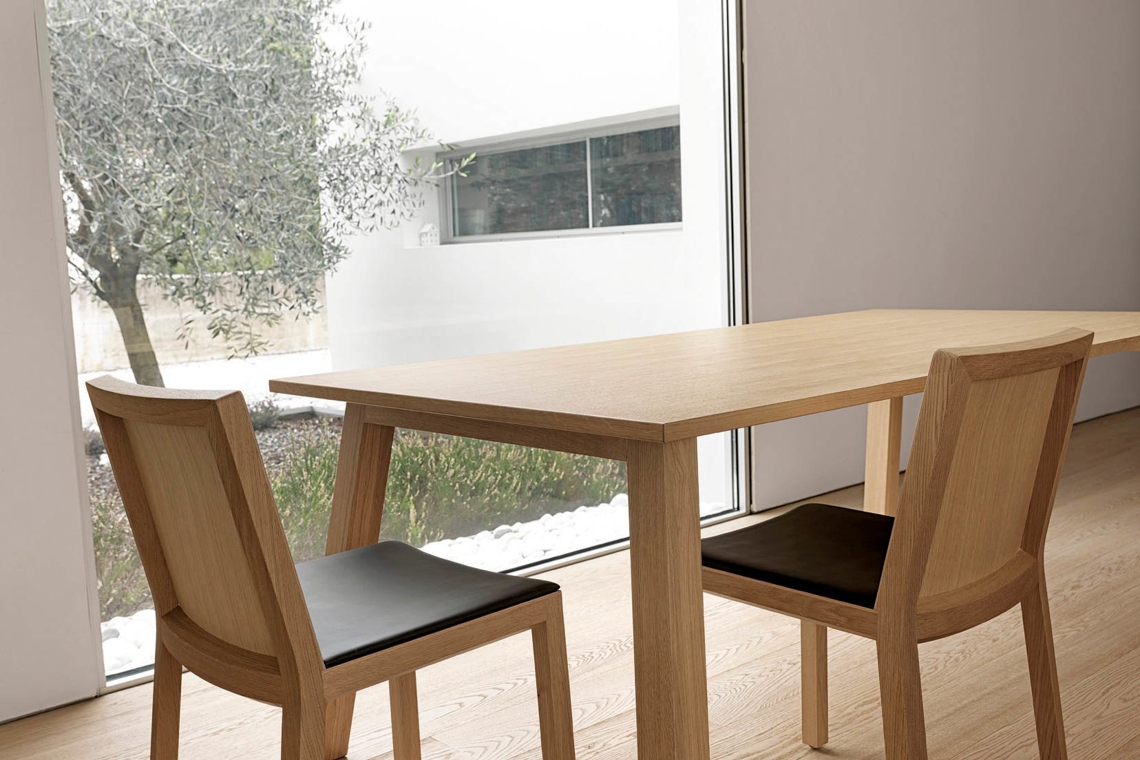 De Oxton tafels hebben een frame van massief hout in eik of beuk. Het tafelblad heeft een dikte van 25 mm. Afmetingen Crassevig Oxton tafels