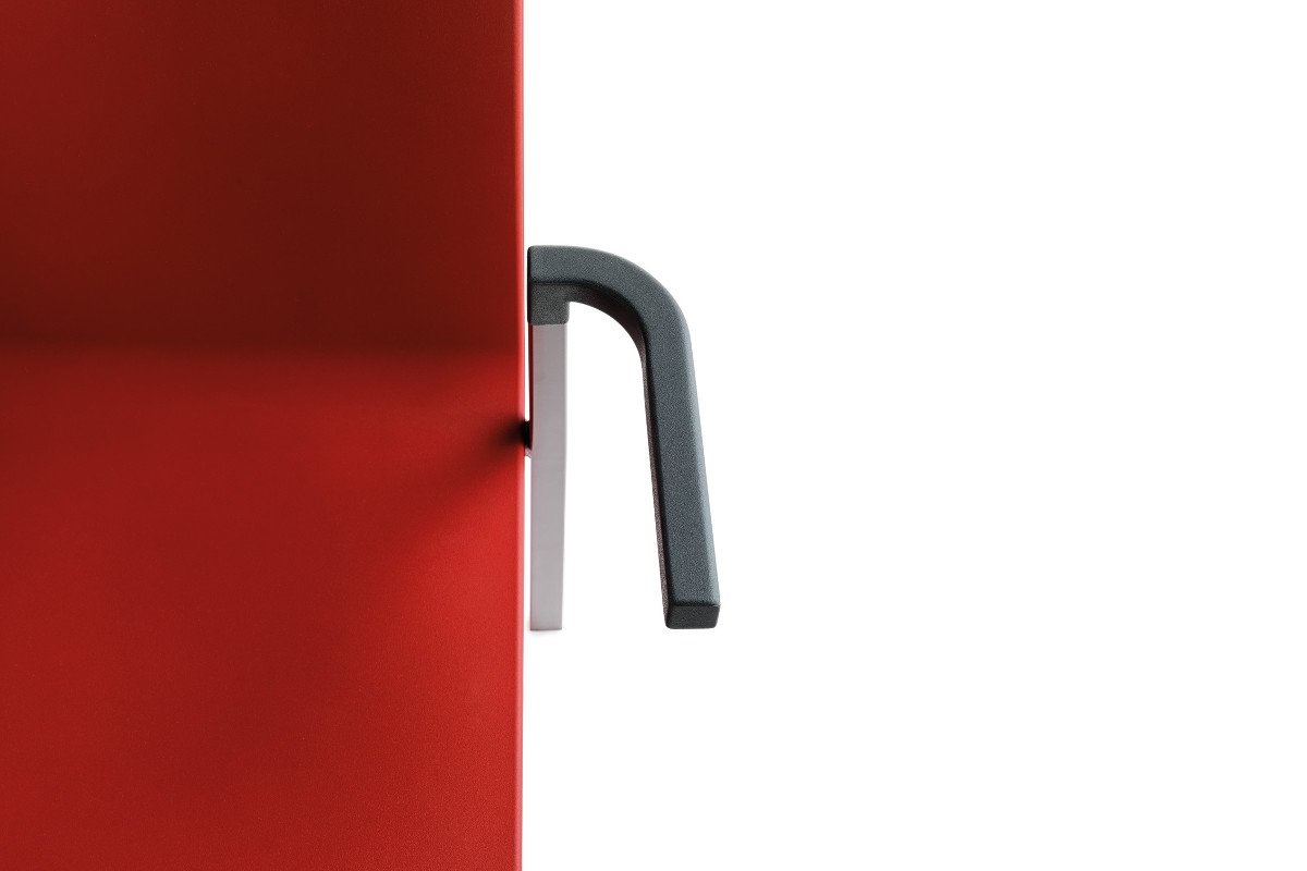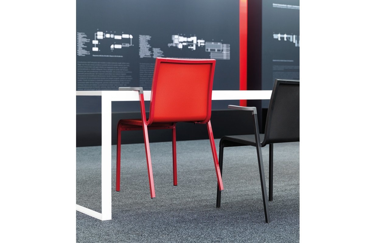 Crassevig Persia, eenvoudige stoel met een frame van vierkante stalen buizen. De Crassevig Persia stoel is verkrijgbaar in verschillende kleuren, met of zonder armleggers.