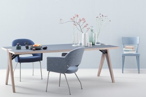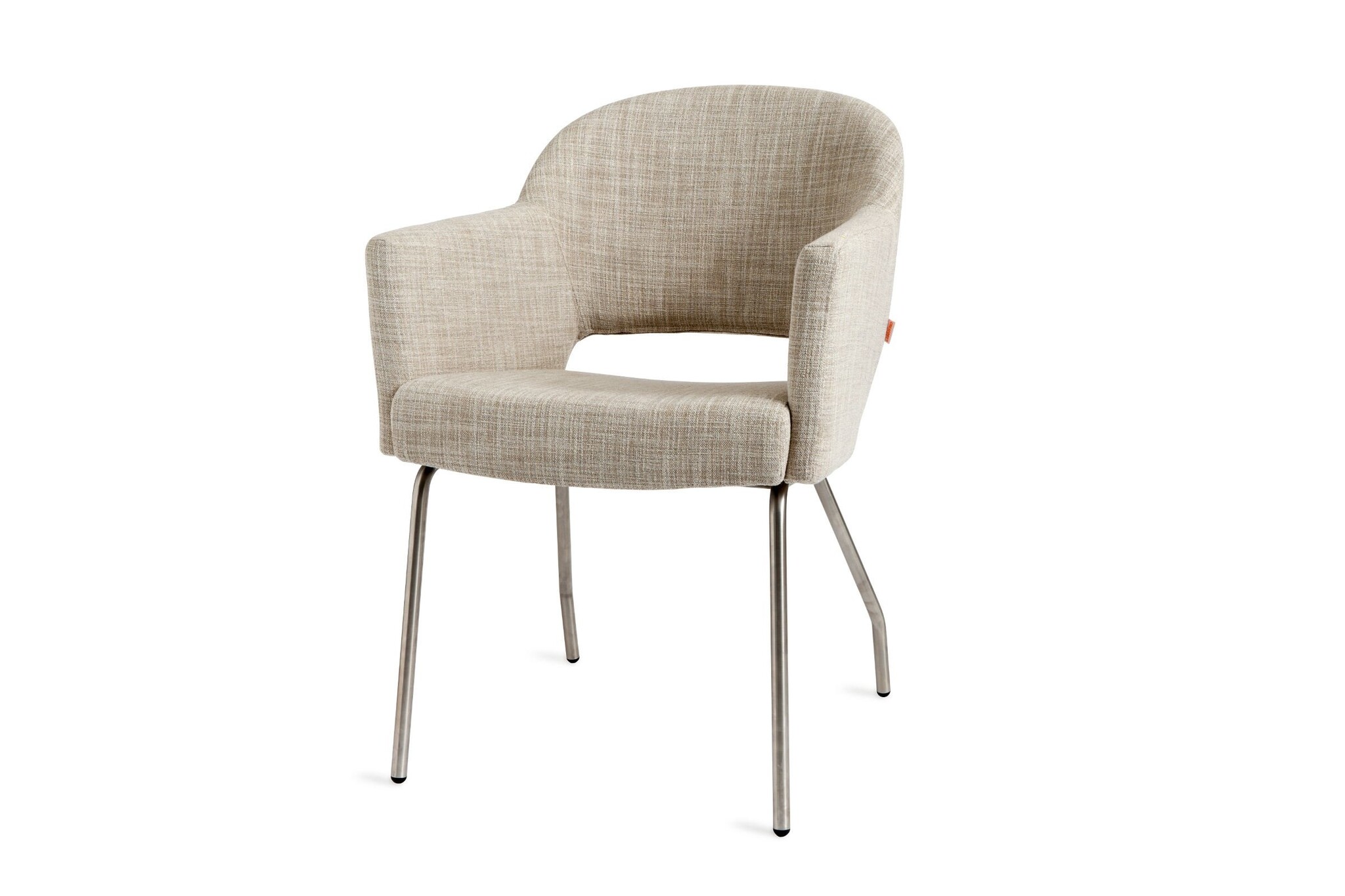 De Flow armstoel van Creafort is gestoffeerd met leer en het frame is van RVS. Afmetingen Creafort Flow stoel