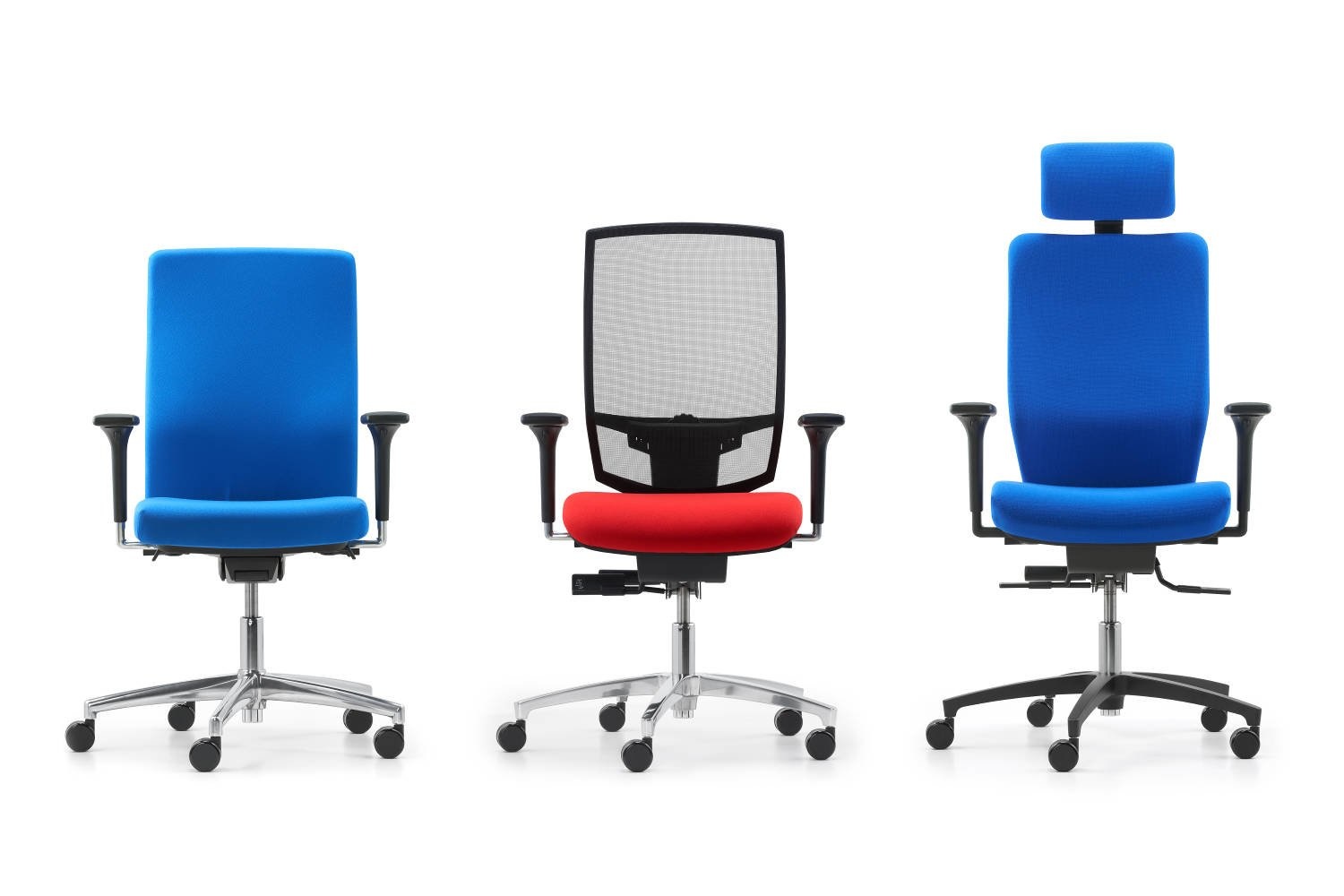Het stervoet onderstel is verkrijgbaar in zwart kunststof, zwart aluminium, wit kunststof, gepolijst aluminium of wit aluminium.