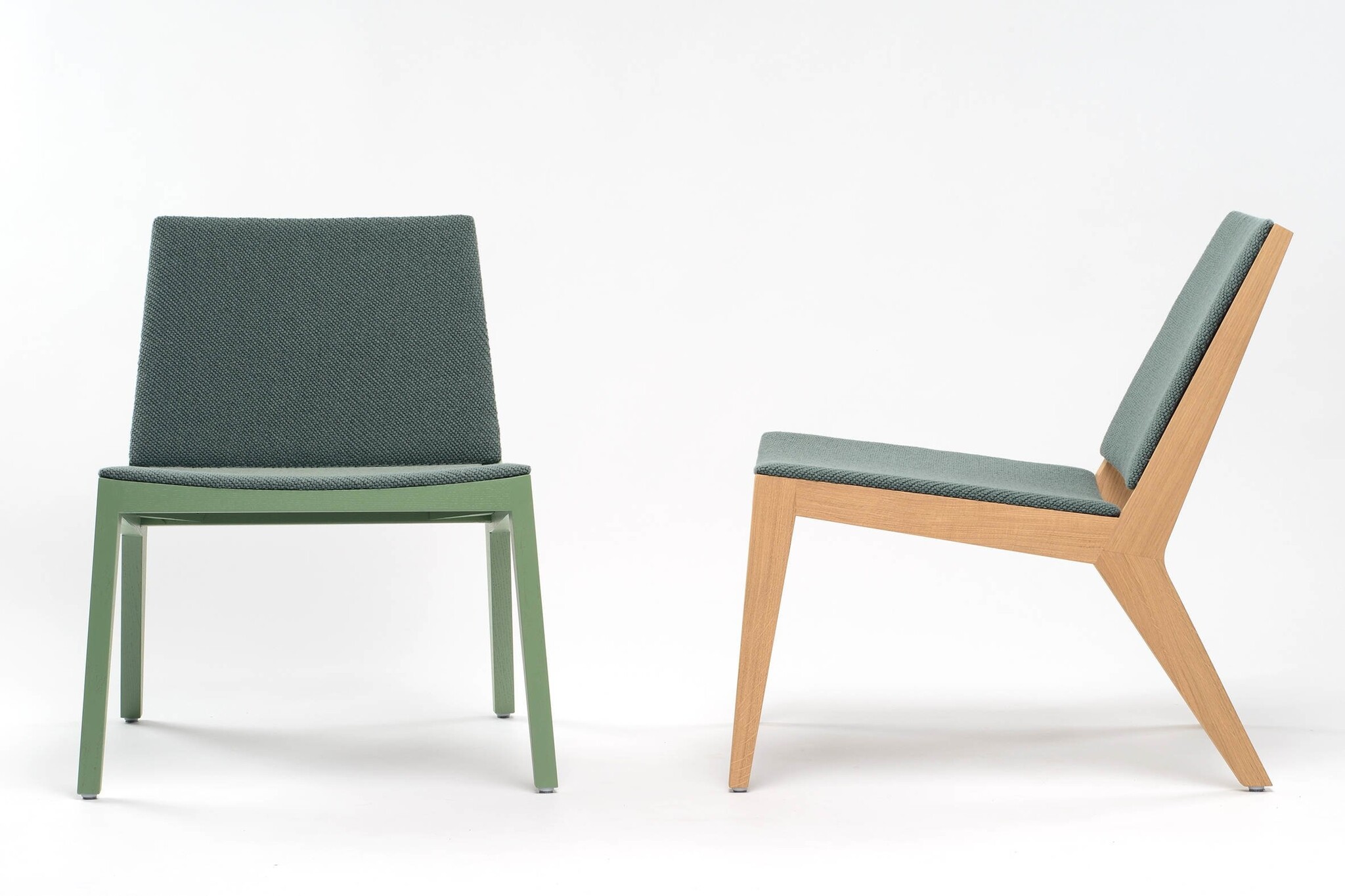 De fauteuil is per twee stuks leverbaar in dezelfde stof