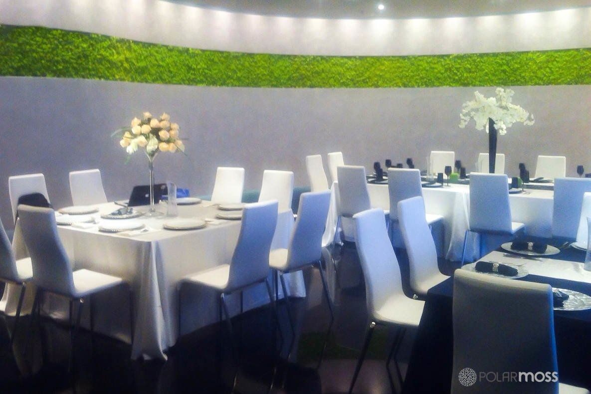 Polarmoss Flex Element zijn te bevestigen aan wanden en voegen een indrukwekkende dimensie toe aan publieke ruimtes. Het product is met de hand vervaardigd uit Polarmoss’ hoge-kwaliteit Polarmoss Extra mos dat is gekleurd en geconserveerd. De hoge-kwaliteit Polarmoss Flex Element is onderhoudsvrij, vlamvertragend en geluidabsorberend en is tevens een binnenoppervlak product dat fungeert als een indicator van goede luchtvochtigheid.