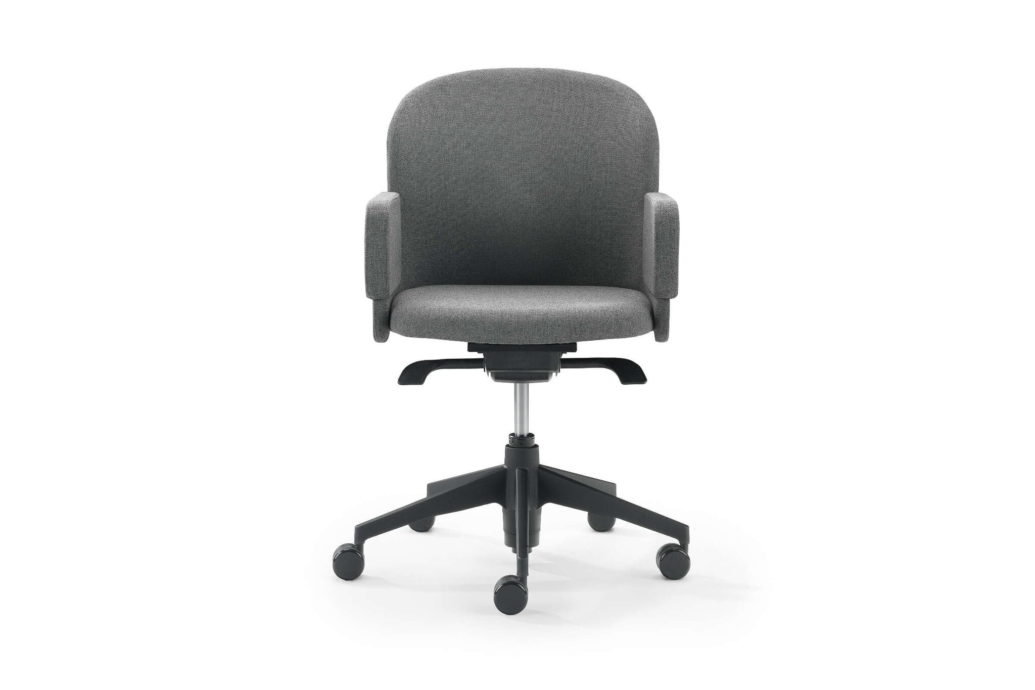 De stoel is voorzien van armleuningen voor optimale ondersteuning.