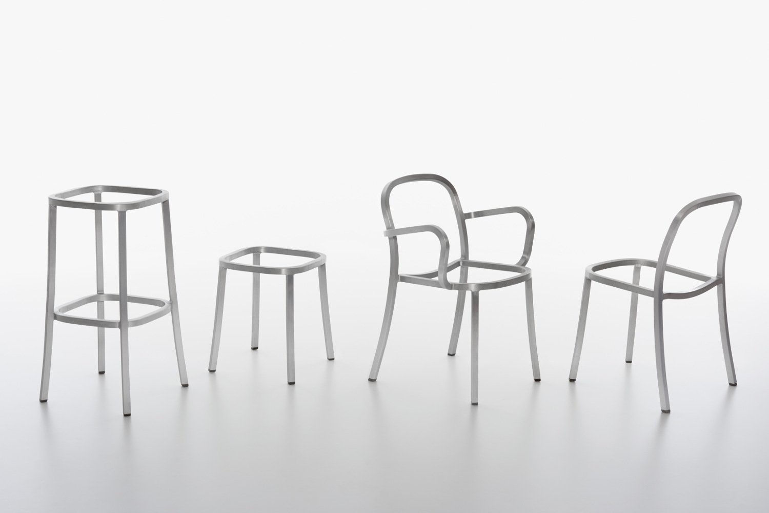 Met de 1 inch kruk van Emeco maakt Jasper Morrison een begin in de collectie met handgemaakte gerecyclede aluminium producten. Het is een lichtgewicht kruk voor binnen en buiten welke door middel van 77 stappen in het productieproces in 1944 voor het eerst is gemaakt. Voor het maken van deze kruk werd er gekozen voor een buis van 1 inch om het frame van te maken. Dit omdat het zo een sterk frame zou worden, maar het gewicht van de barkruk zo laag mogelijk houdt. Er wordt dus met een minimale hoeveelheid materiaal een maximale sterk product gecreëerd. De Emeco 1 inch van Jasper Morrison is een perfecte combinatie tussen handwerk, precisie, ontwikkelingen, duurzaamheid, esthetiek, kracht en comfort. Het gebruikte hout is 100% gerecycled hout en kan geverfd worden in zeven kleuren: blauw, bordeaux, bruin, donker grijd, groen, lichtgroen en oker. Ook geschikt voor buitengebruik