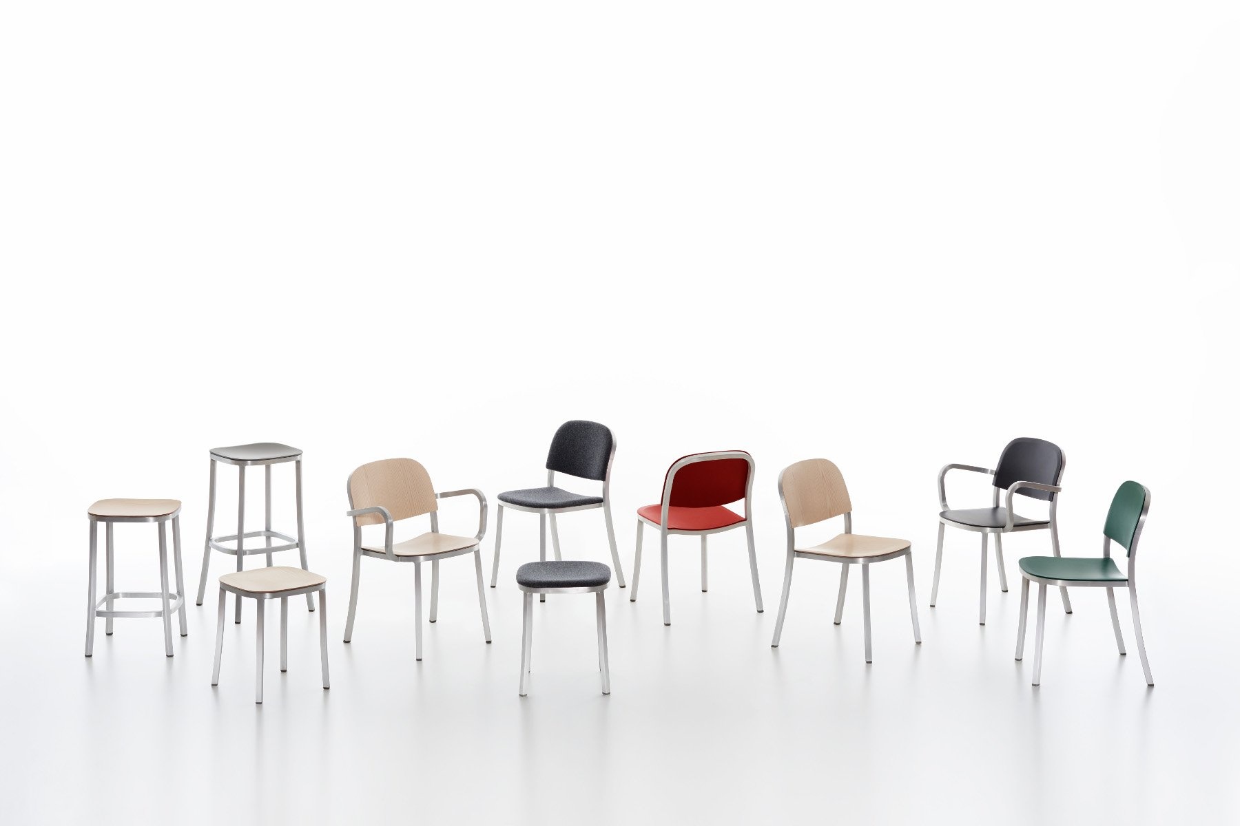 Met de 1 inch stoel van Emeco maakt Jasper Morrison een begin in de collectie met handgemaakte gerecyclede aluminium producten. Het is een lichtgewicht stoel welke door middel van 77 stappen in het productieproces in 1944 voor het eerst is gemaakt. Voor het maken van deze stoel werd er gekozen voor een buis van 1 inch om het frame van te maken. Dit omdat het zo een sterk frame zou worden, maar het gewicht van de stoel zo laag mogelijk houdt. Er wordt dus met een minimale hoeveelheid materiaal een maximale sterk product gecreëerd. De 1 inch van Jasper Morrison is een perfecte combinatie tussen handwerk, precisie, ontwikkelingen, duurzaamheid, esthetiek, kracht en comfort. In de collectie van de Emeco 1 inch zitten stoelen, stoelen met armleuningen, barstoelen in drie hoogtes en bartafels. Het gebruikte hout is 100% gerecycled hout en kan geverfd worden in zeven kleuren: blauw, bordeaux, bruin, donker grijd, groen, lichtgroen en oker. Ook geschikt voor buitengebruik.
