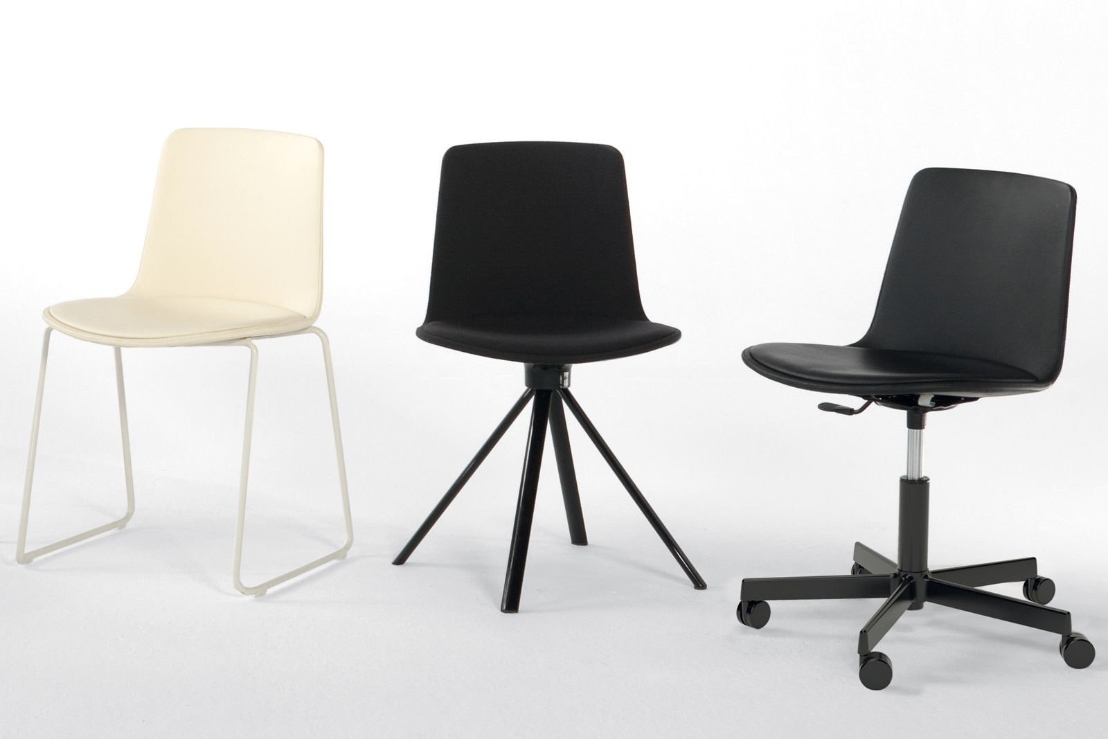 De sterpootstoel met wielen, met of zonder armleggers, is een ander nieuw programma van de Enea Lottus en is leverbaar als een vaste en draaibare versie.