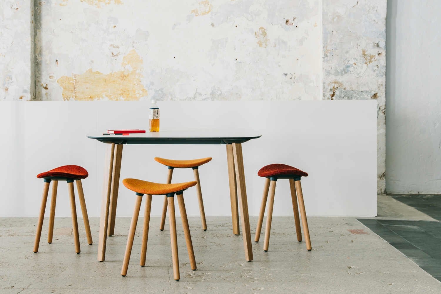 De tafel is verkrijgbaar in 12 kleuren en heeft 2 soorten basismaterialen waar u uit kunt kiezen: Hout of aluminium.