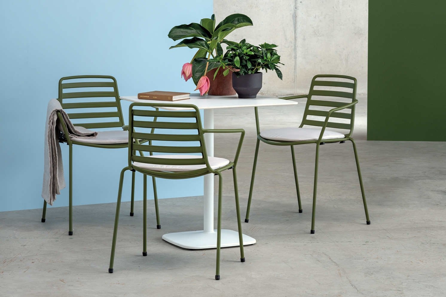 Street stoel is stapelbaar (tot een maximum van 6 stuks), hetgeen ideaal is wanneer de Enea Street stoelen op het terras gebruikt worden en opgeruimd moet worden.