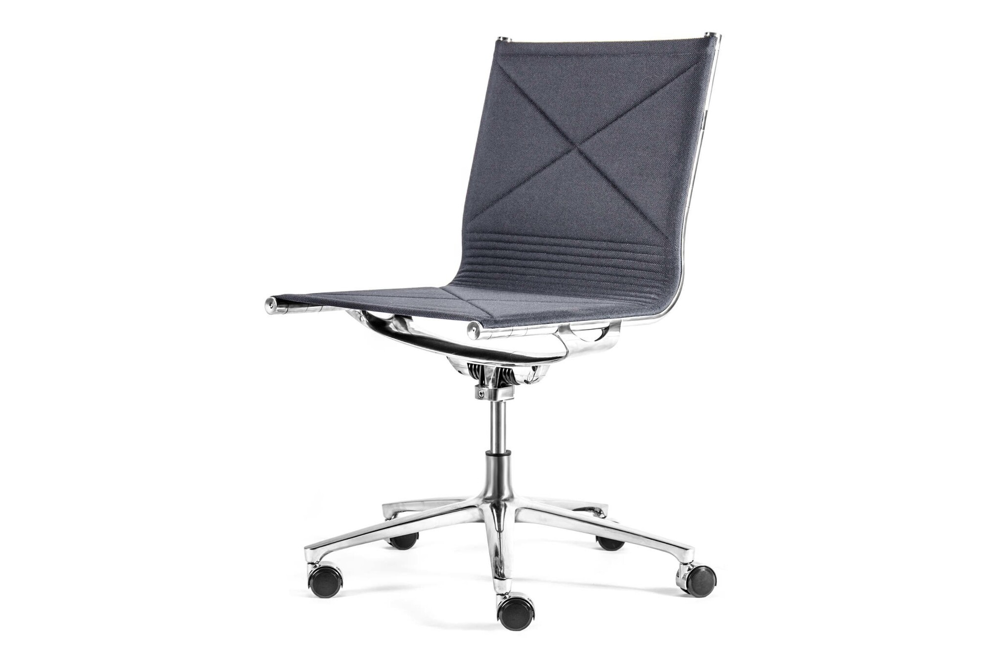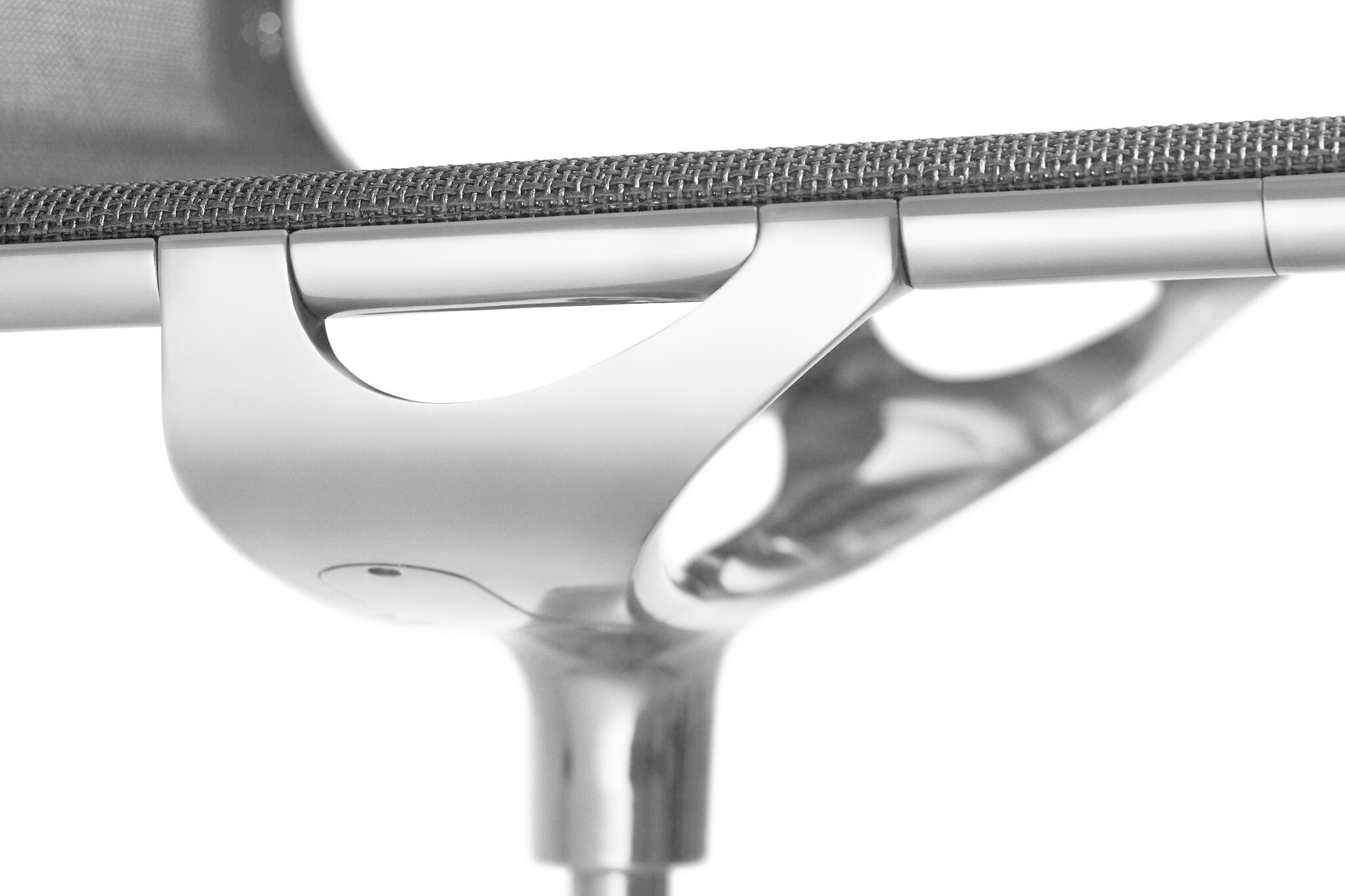 Engelbrechts Joint stoel is gemaakt van gepolijst aluminium, verkrijgbaar met een 4-ster draaivoet voor vergaderingen of een 5-ster draaivoet met hoogteverstelling als een bureaustoel. Beide versies zijn verkrijgbaar in gaas, stof of leer. Engelbrechts Joint afmetingen: