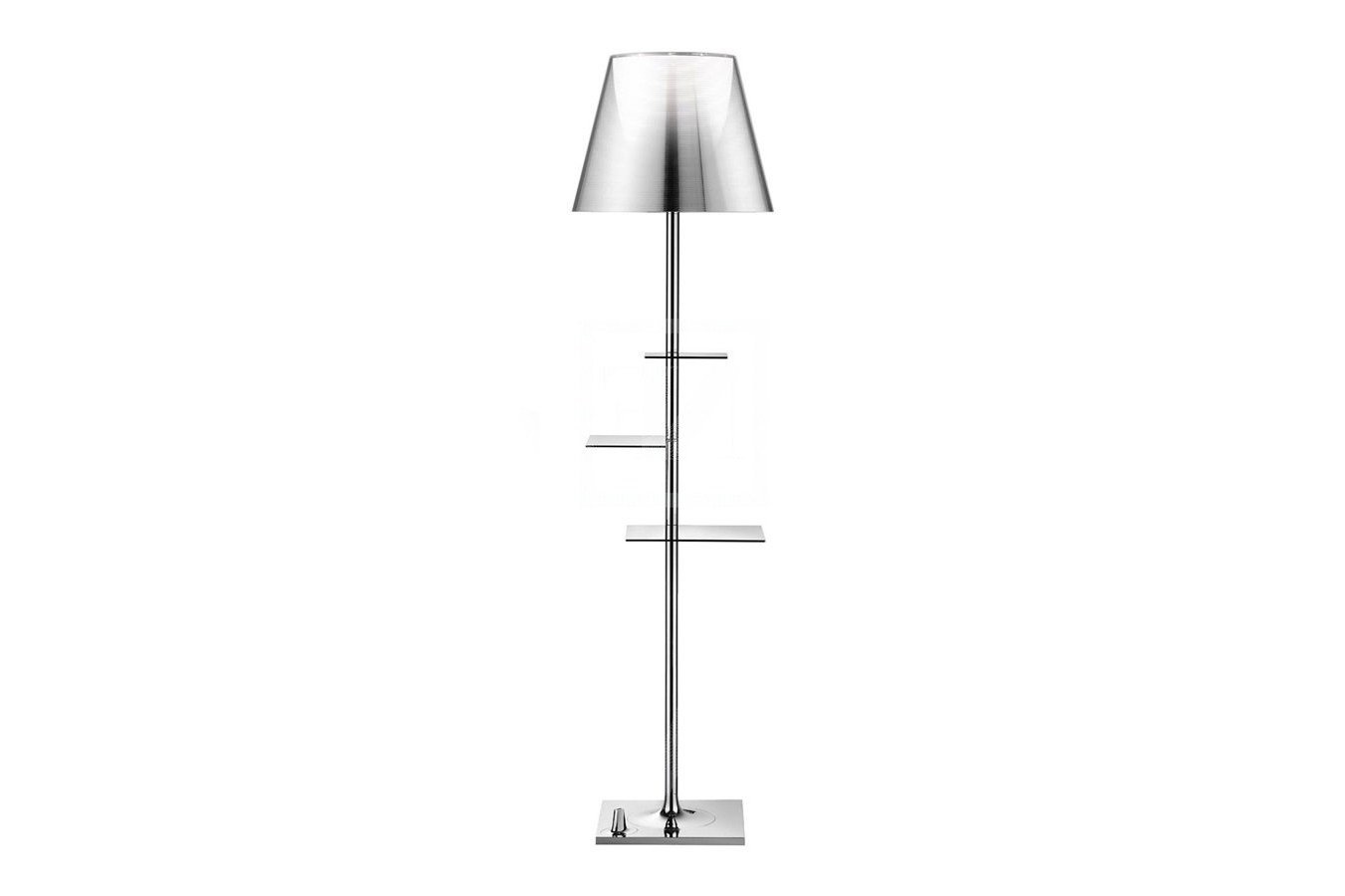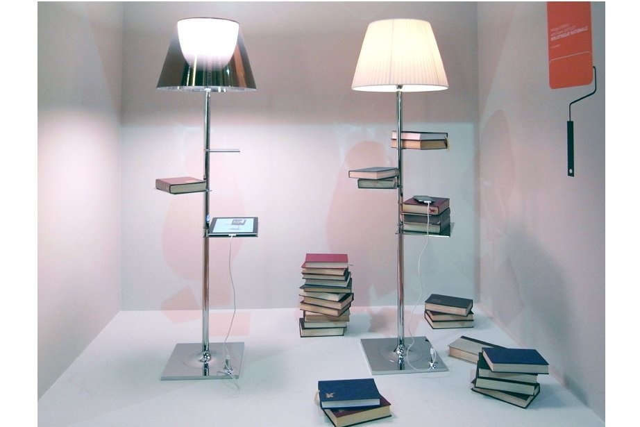 Flos Bibliotheque Flos Bibliotheque is een staande vloerlamp die wordt gekenmerkt door drie boekenplanken van roestvrij staal. De planken zijn bevestigd aan de centrale sokkel en begeven zicht in een opwaartse spiraal naar het licht. De Bibliotheque is uitgerust met een USB-aansluiting voor het opladen van diverse mobiele apparaten zoals tablets en smartphones.