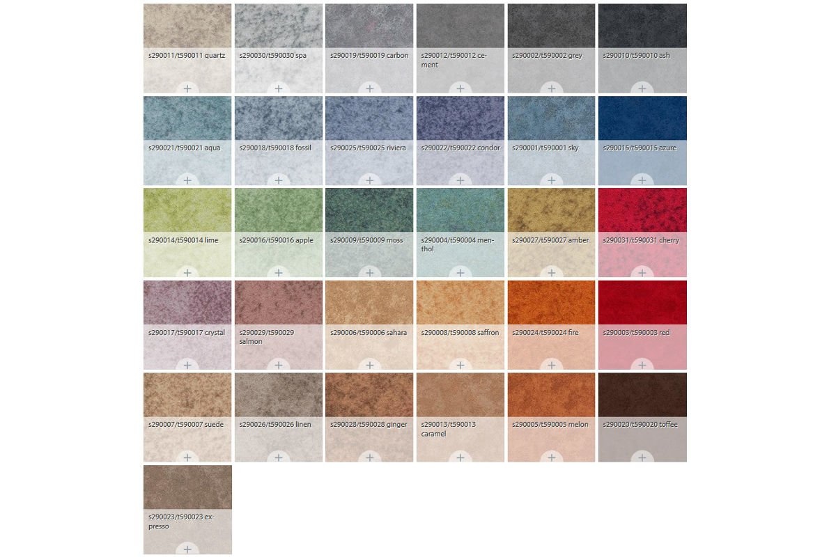 Aanlevering: rol 2 meter, tegels 50 x 50 cm en leverbaar in 31 kleuren.