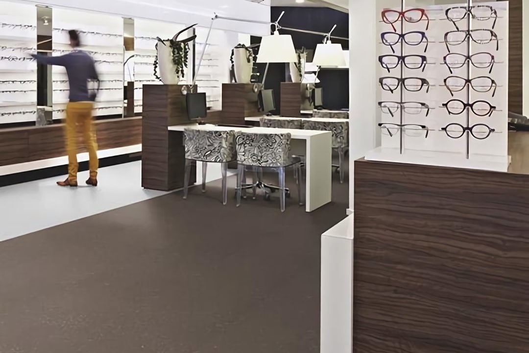 Door verwerking van Step Crystals blijven de kleuren mooi gedurende de algehele levensduur en de PUR finish laag draagt bij aan makkelijker onderhoud en een natuurlijk matte uitstraling. De Forbo Surestep Star vinyl vloer is leverbaar in 9 eigentijdse kleuren met grijs als basis en holografisch strooisels als accent. Het dessin doet denken aan een Terrazzovloer.