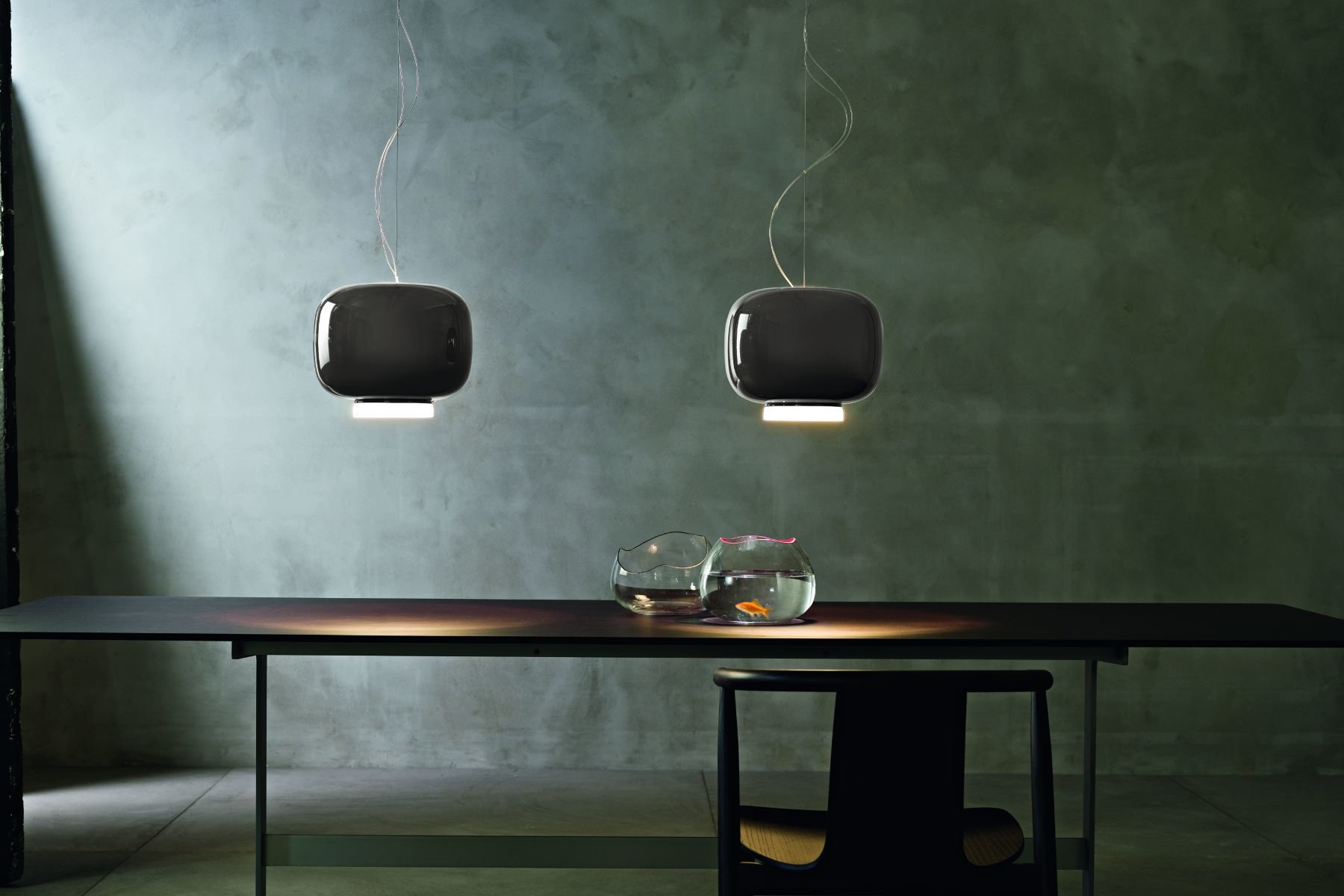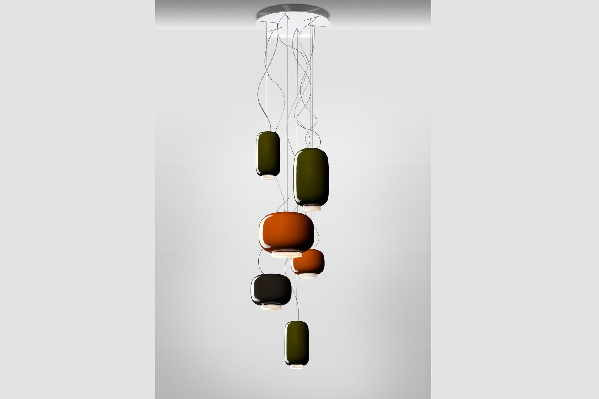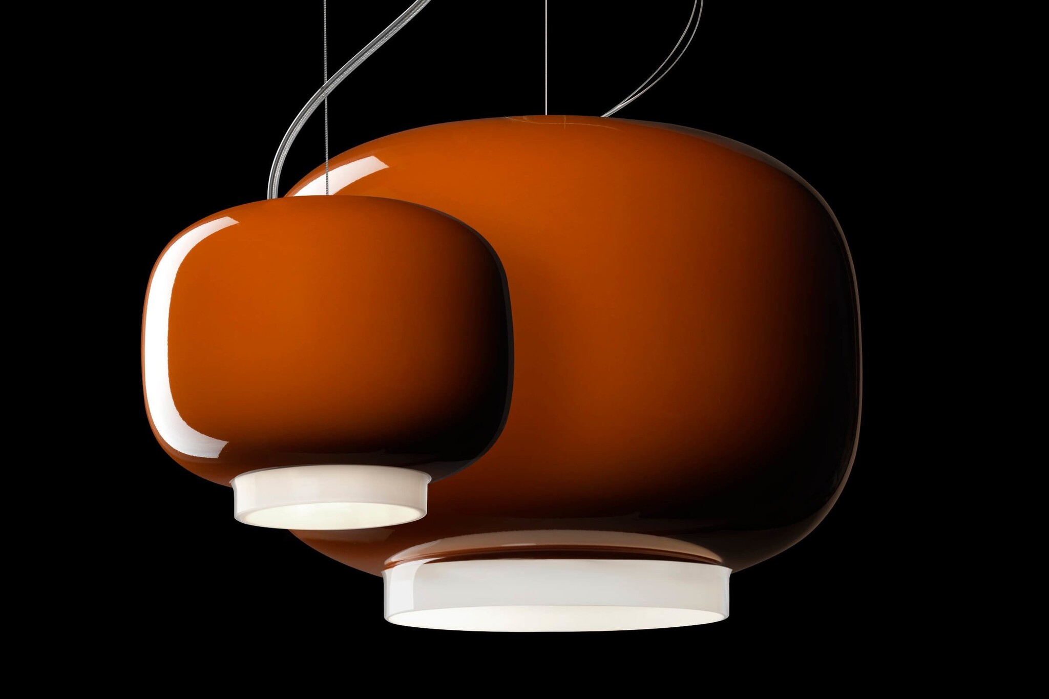Foscarini Chouchin plafondlamp Foscarini Chouchin plafondlamp is ontworpen door Ionna Vautrin. De Foscarini lamp is gemaakt van speciaal geblazen glas en wordt geleverd met een snoer van 2 of 5 meter. De lamp is leverbaar in twee kleuren; oranje en grijs. De Chouchin is verkrijgbaar in 2 maten, de Chouchin en de Chouchin Mini.