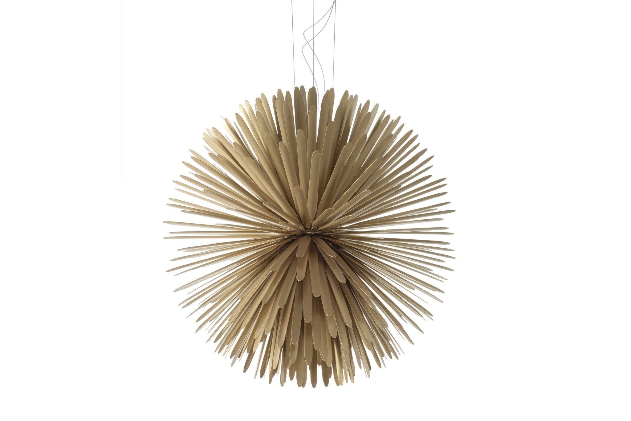 De Foscarini Sun Light of Love hanglamp heeft een opvallend design van de Nederlandse ontwerper Tord Boontje. De zon is duidelijk een inspiratiebron geweest voor het ontwerp. Gouden of witte zonnestralen van aluminium vormen de basis van deze hanglamp.Door de grootte is het echt een eyecatcher die niet misstaat in grote ruimtes zoals een atrium, hal of lounge met een hoog plafond. Dankzij het lange snoer van 320 cm is de Foscarini Sun Light of Love goed op te hangen. Kenmerken van de Foscarini Sun Light of Love lamp