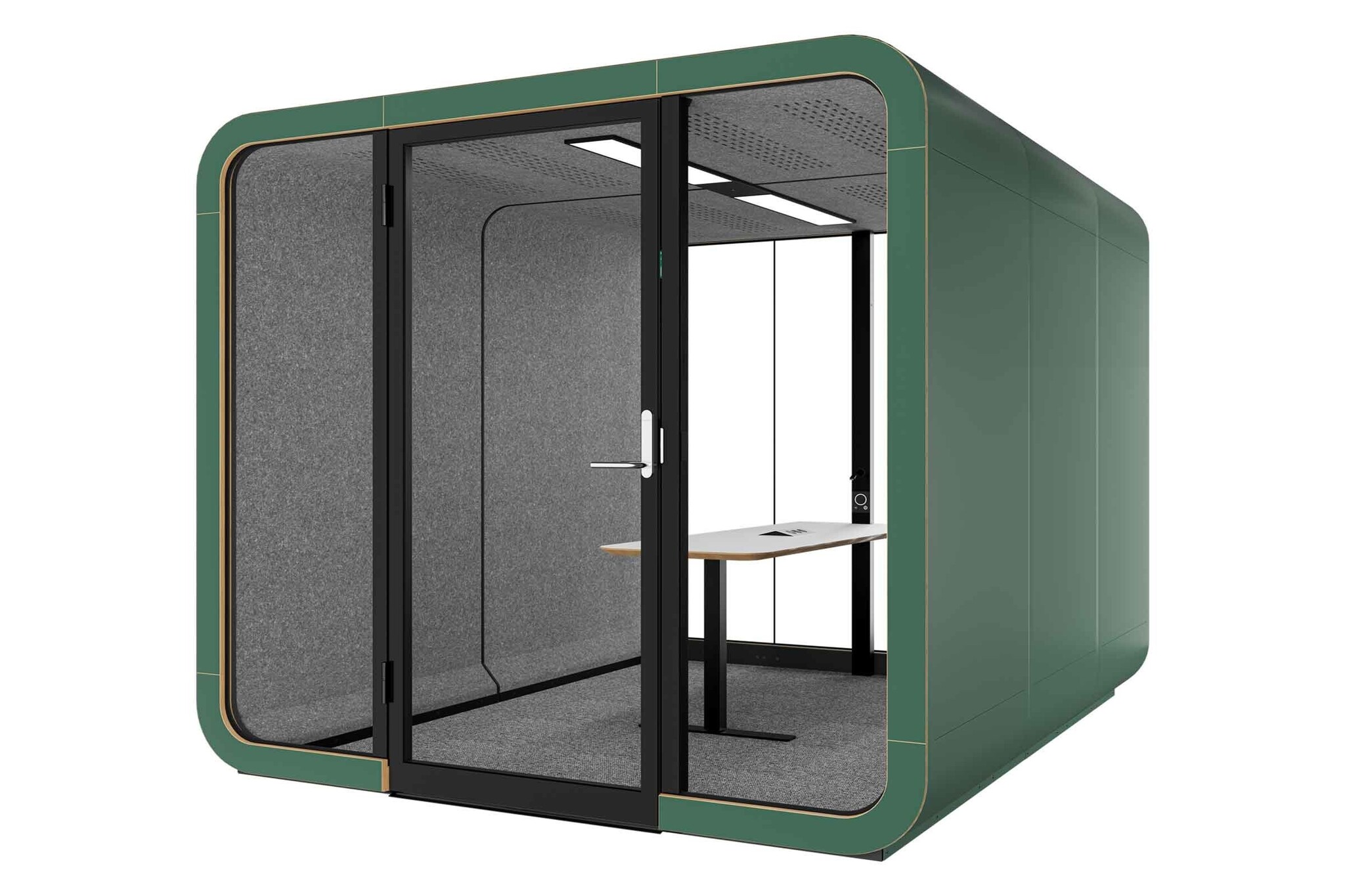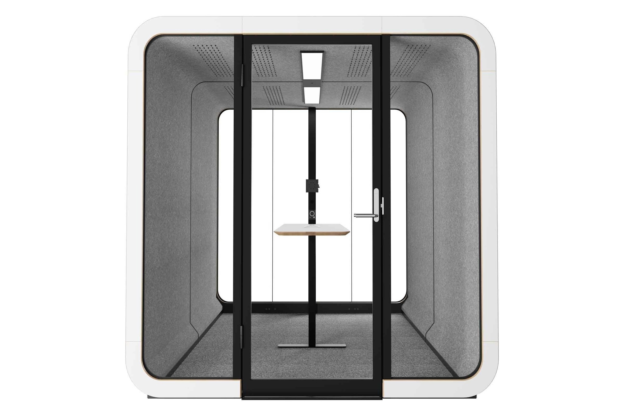De Framery 2Q is een akoestische ruimte en is ontworpen voor 4 tot 6 personen. Deze ruimte is ideaal geschikt om te brainstormen of om vergaderingen te houden. Het superieure geluidsisolatiesysteem zorgt ervoor dat uw vergaderingen de rest van het kantoor niet storen en, ook niet geheel onbelangrijk, het kantoorgeluid zal u niet storen. Je kunt de Framery 2Q kiezen zonder meubels, waardoor je de mogelijkheid hebt om het meubilair naar eigen inzicht in te delen. De uitstekende geluidsisolatie zorgt ervoor dat u en uw team totale geluidsprivacy hebben en de instelbare luchtstroom zorgt voor een aangename sfeer om in te werken.