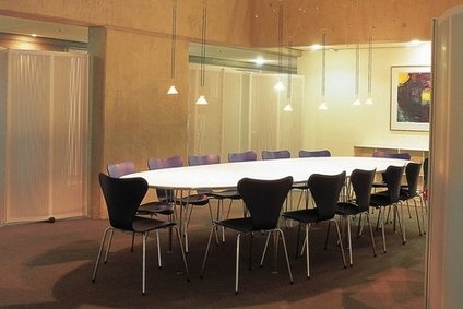 Fritz Hansen Table omvat een serie vierkante, rechthoekige, ronde en ovale vergadertafels. Het tafelblad kan uitgevoerd worden in laminaat, fineer en linoleum. Afhankelijk van de tafelvorm is er de keus uit drie soorten onderstellen; spanpoten in verchroomd of mat verchroomd, staal, 4 of 6 kruisvoet in gesatineerd gepolijst aluminium en een satijnen verchroomde stalen onderstel.