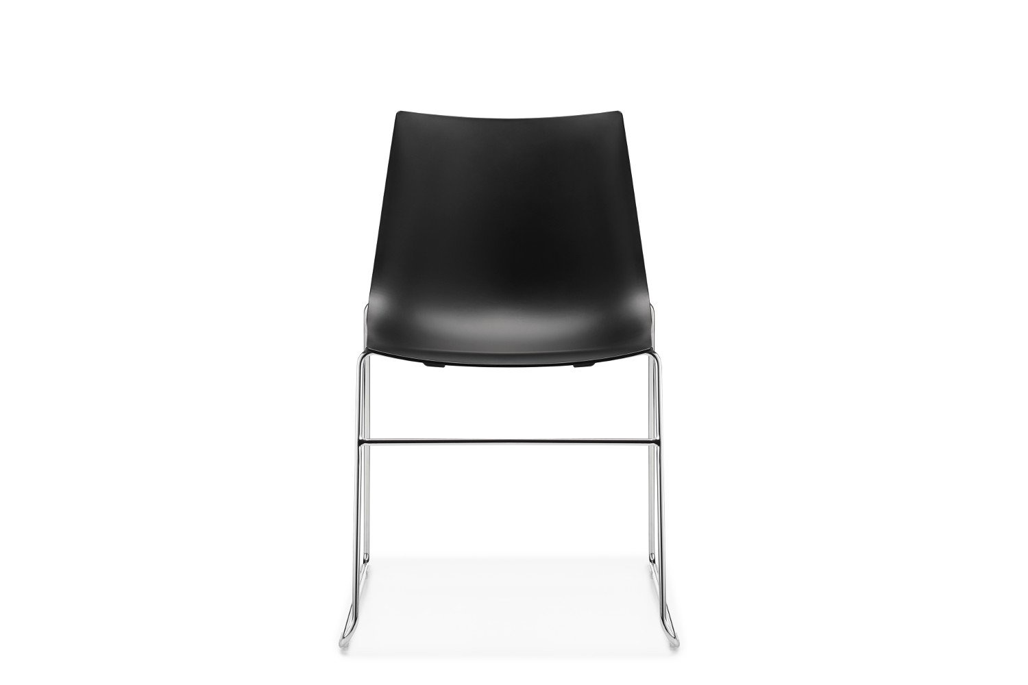 Stapelbaar. Stapelwagen (voor 16 stoelen zonder gestoffeerde zitting of 14 stoelen met gestoffeerde zitting) leverbaar voor optimale stapeling van stoelen en eenvoudige verplaatsing van de gestapelde stoelen.