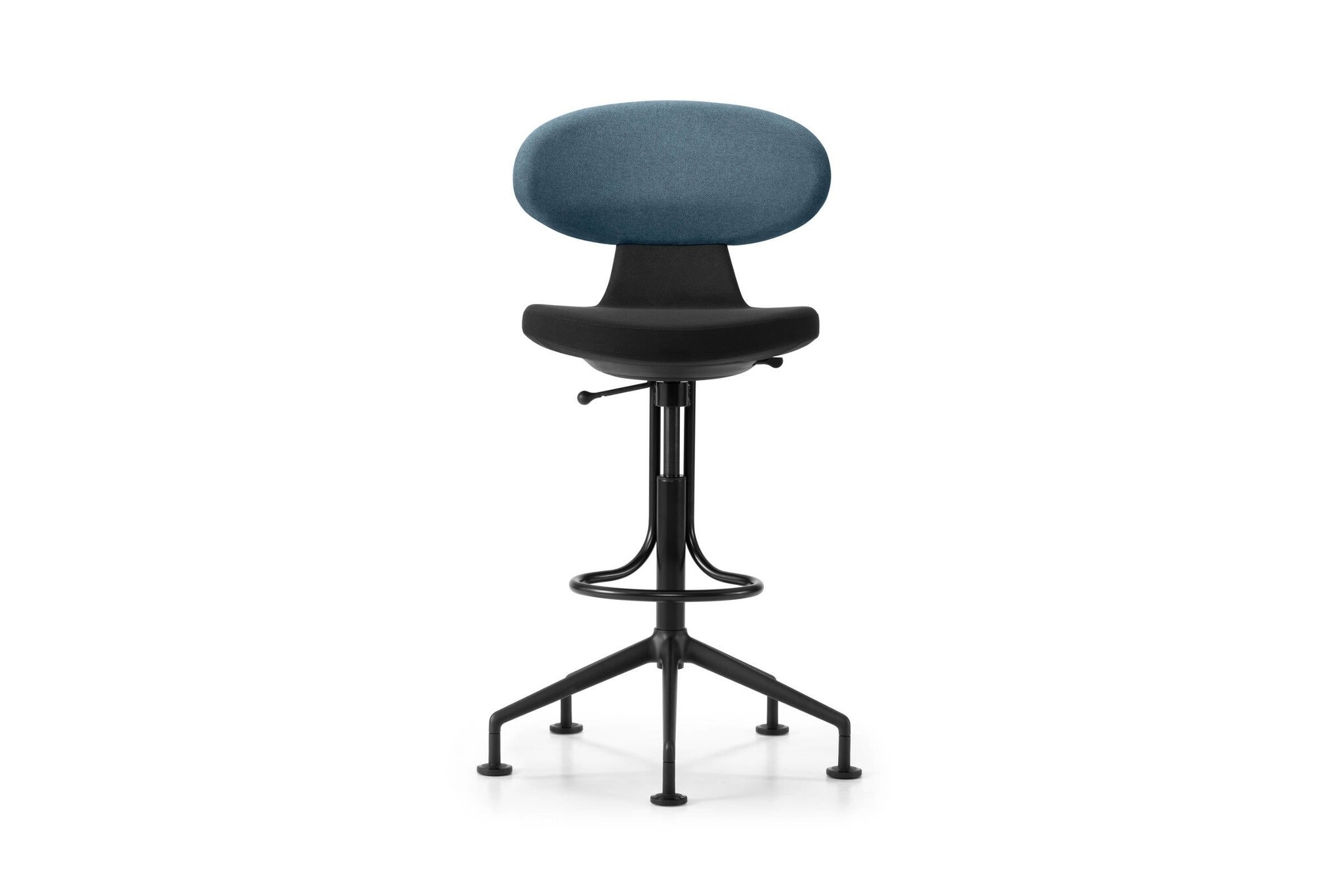 De hoge kruk | kassastoel heeft 2 uitvoeringen: Uitvoering met voetenring en de uitvoering met voetsteun.
