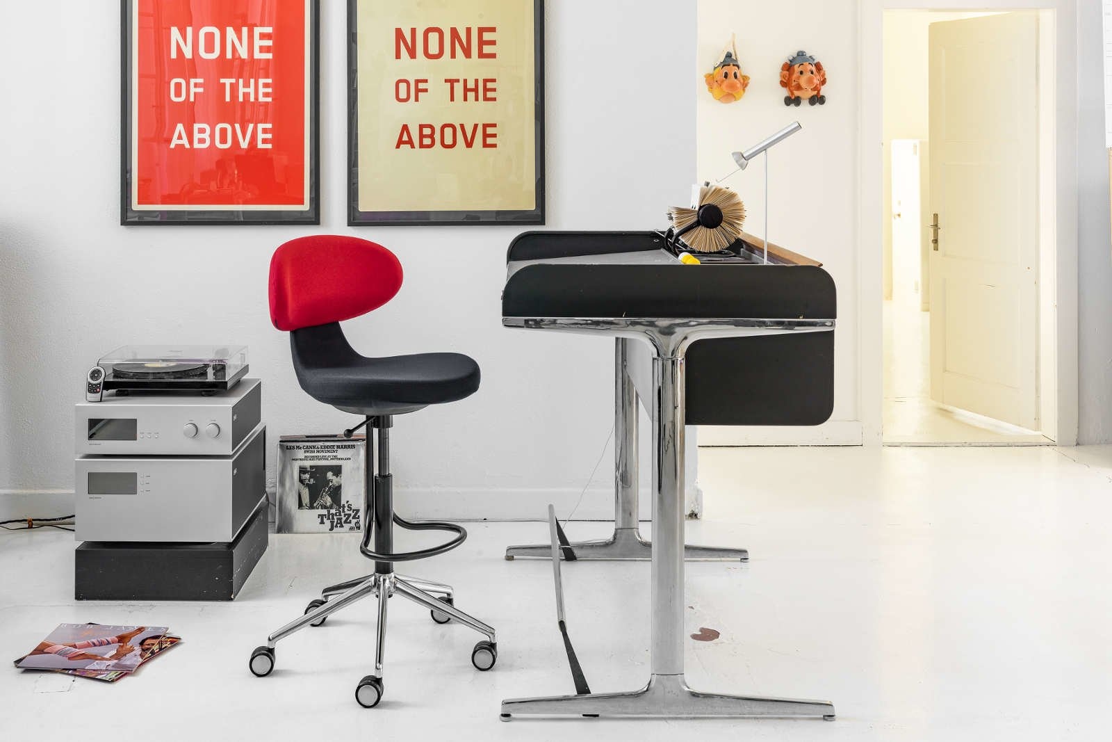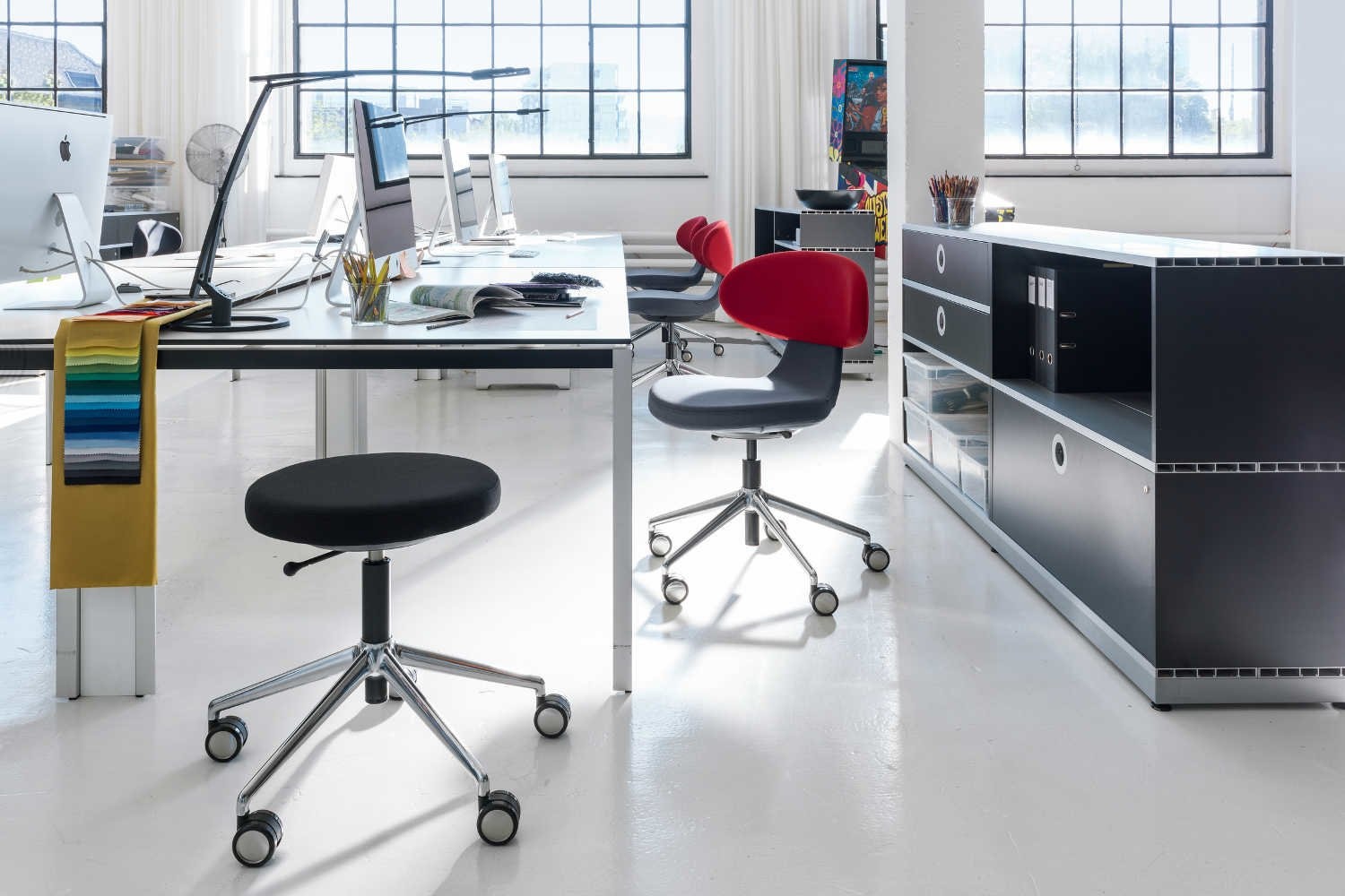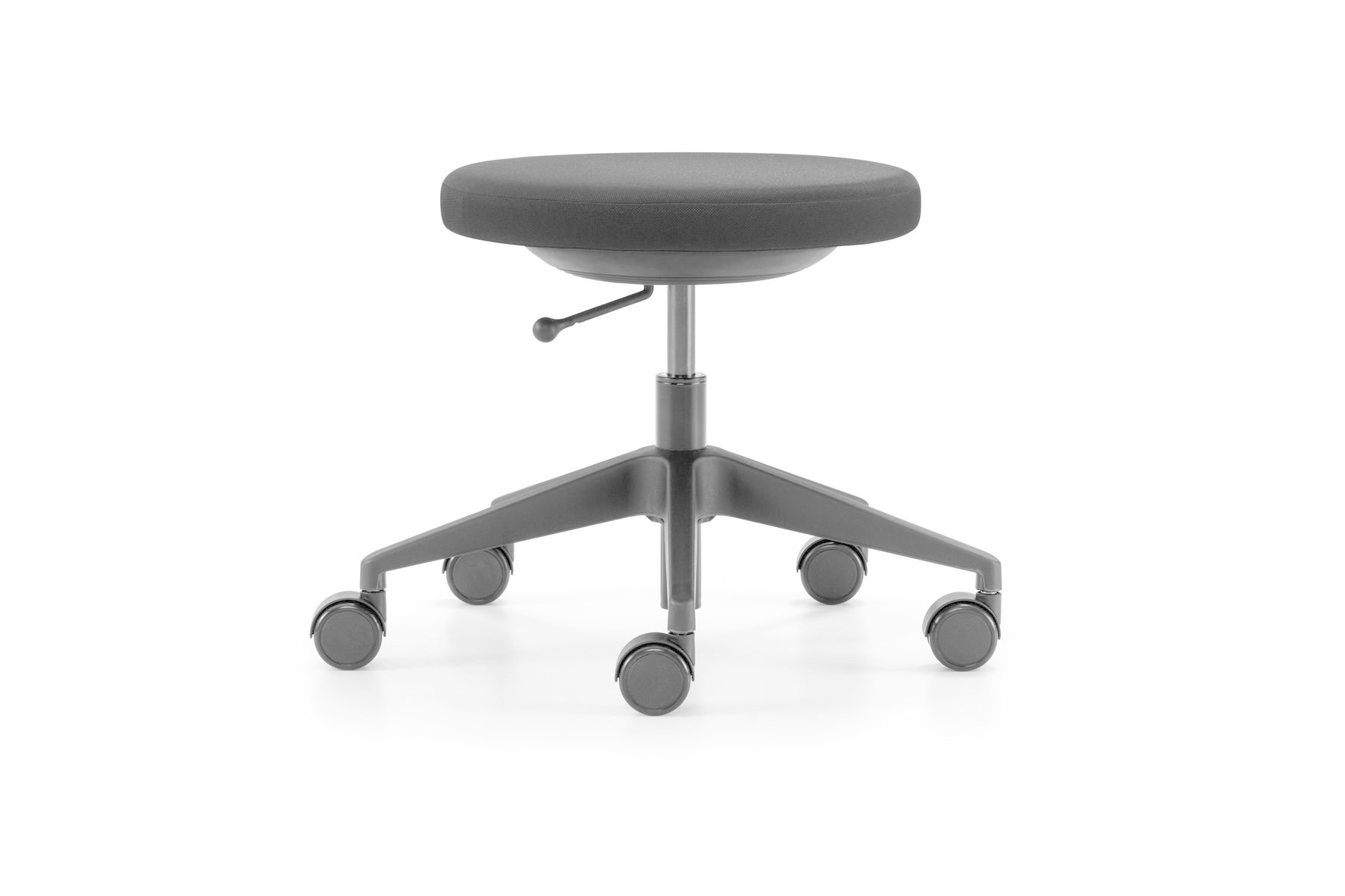 De Girsberger Simplex 3D hocker is een verrijdbare kruk met een gestoffeerde zitting. De hocker is in hoogte verstelbaar door middel van een hendel onder de zitting, zodat u zelf kunt bepalen hoe hoog of laag u wilt zitten. Het bereik is 48 – 58 cm. Kenmerken van de Girsberger Simplex 3D hocker