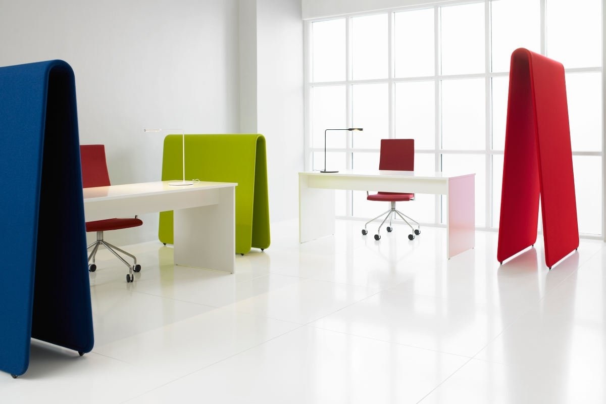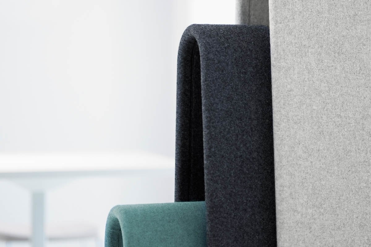 De Glimakra Alp is een vloerscherm waarvan de dunne hoek in het design is geïnspireerd op een papieren vel wat over een waslijn is gehangen. Het holle design van de Alp geeft de mogelijkheid om de verschillende vloerschermen in elkaar te schuiven, hiermee is zelf te bepalen hoe veel akoestische demping er nodig is. Het vloerscherm bestaat uit 15 mm geluidsabsorberend polyether welke aan beide zijden van een 6 mm dik MDF bord is gelijmd. Hierover komt de stoffen bekleding. Het frame is van hout. Mogelijke extra opties zijn het toevoegen van een schrijfbord, een pennenhouder en een wisser. De Glimakra Alp is 100% recyclebaar.Kenmerken Glimakra Alp akoestisch vloerscherm