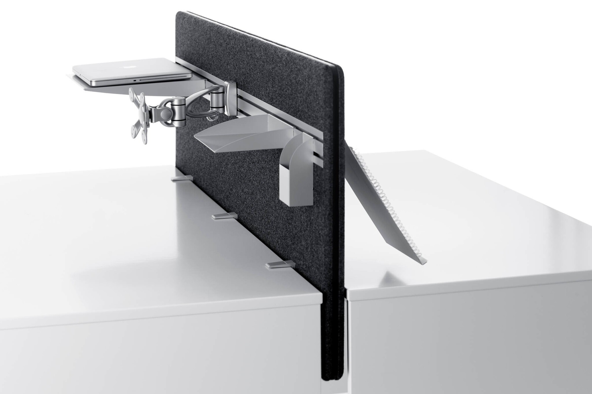 De Contrast van Glimakra is een akoestisch scherm gemaakt van een MDF-plaat waar aan beide zijden 15 mm polyether is gelijmd. Het scherm is bekleed met stof. De voetplaat is 750 x 400 mm en gemaakt van een matte poedercoating, afgewerkt met chroom of grijs gelakt. De Contrast is 100 % recyclebaar.