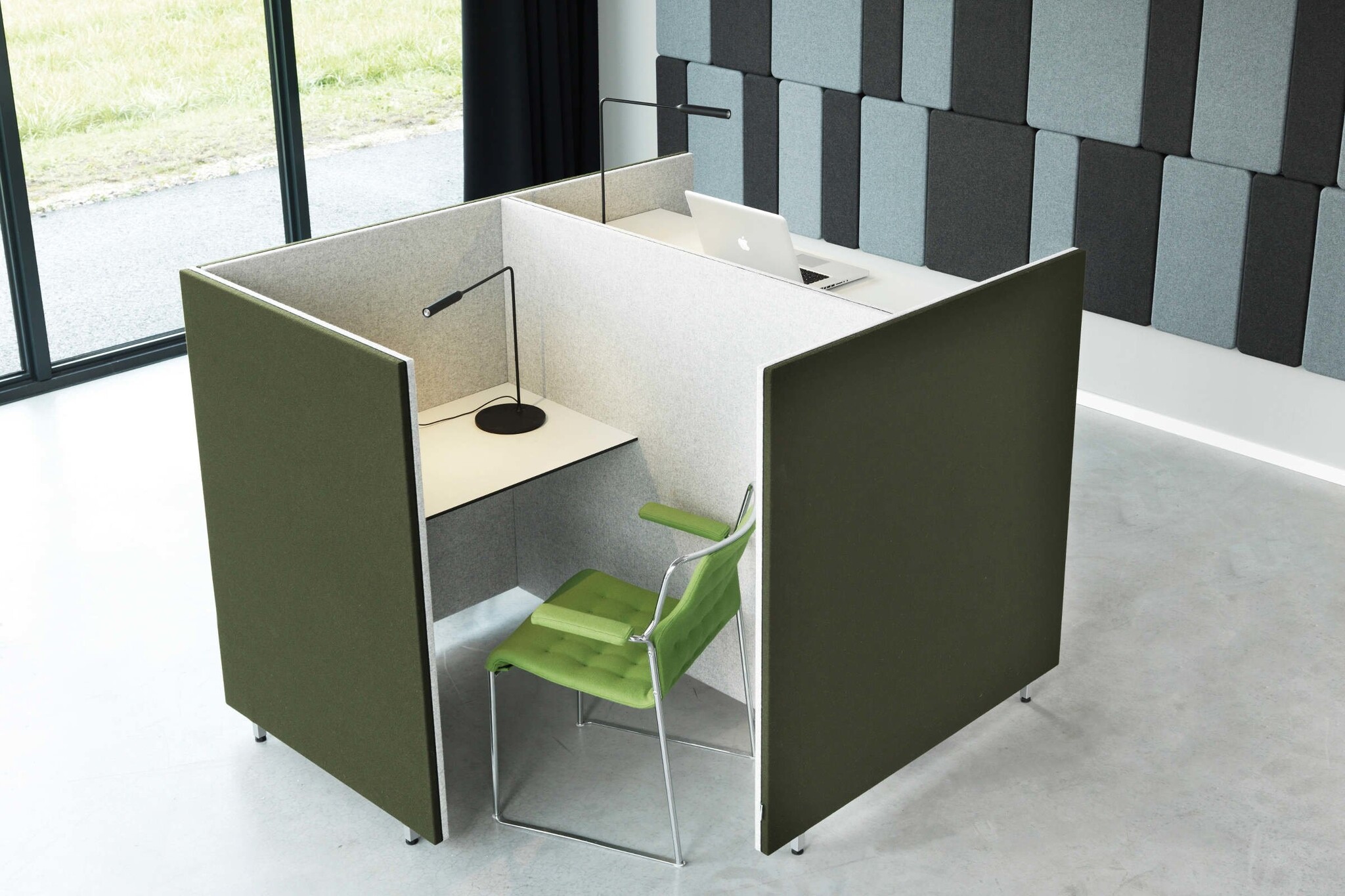 Akoestische werkplek met een goede absorptiecapaciteit. Limbus Concept kan gestoffeerd en met functionele accessoires worden uitgevoerd. Glimakra is verder in hoogte verstelbaar en is zo ideaal voor het nieuwe werken waar zit-sta werkplekken veel worden toegepast.