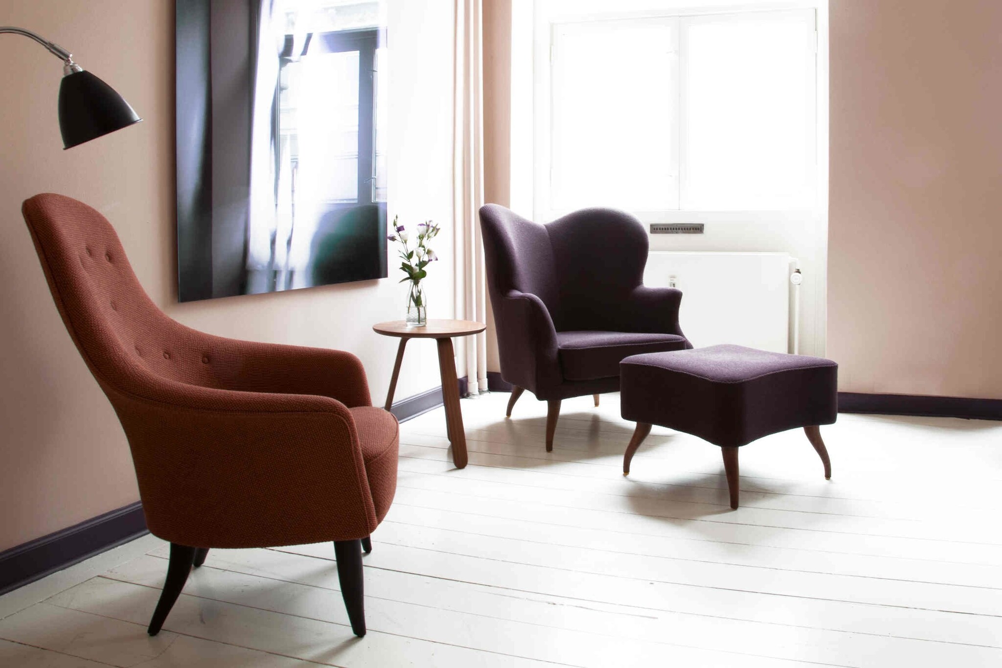 De Gubi Adam is een fauteuil met een comfortabele uitstraling. De Adam Lounge Chair is ontworpen door de Zweedse ontwerpster Kerstin H. Holmquist tijdens haar werk bij Nordiska Kompaniet, NK (een groot Zweeds warenhuis), in 1958. Een echte klassieker dus! Adam is het mannelijke deel van de collectie van Holmquist. De armleuningen van de Gubi Adam lopen soepel over de hoge rug en zorgen voor elegante, ronde en omsluitende bochten met optimale ondersteuning. Deze Gubi Adam fauteuil past met zijn klassieke ontwerp goed in de lounge van een hotel, wachtkamer of andere openbare ruimtes. Tegenwoordig zie je ook steeds vaker een huiskamer op kantoor om het personeel tot rust te laten komen. Daarin past deze fauteuil ook prima.