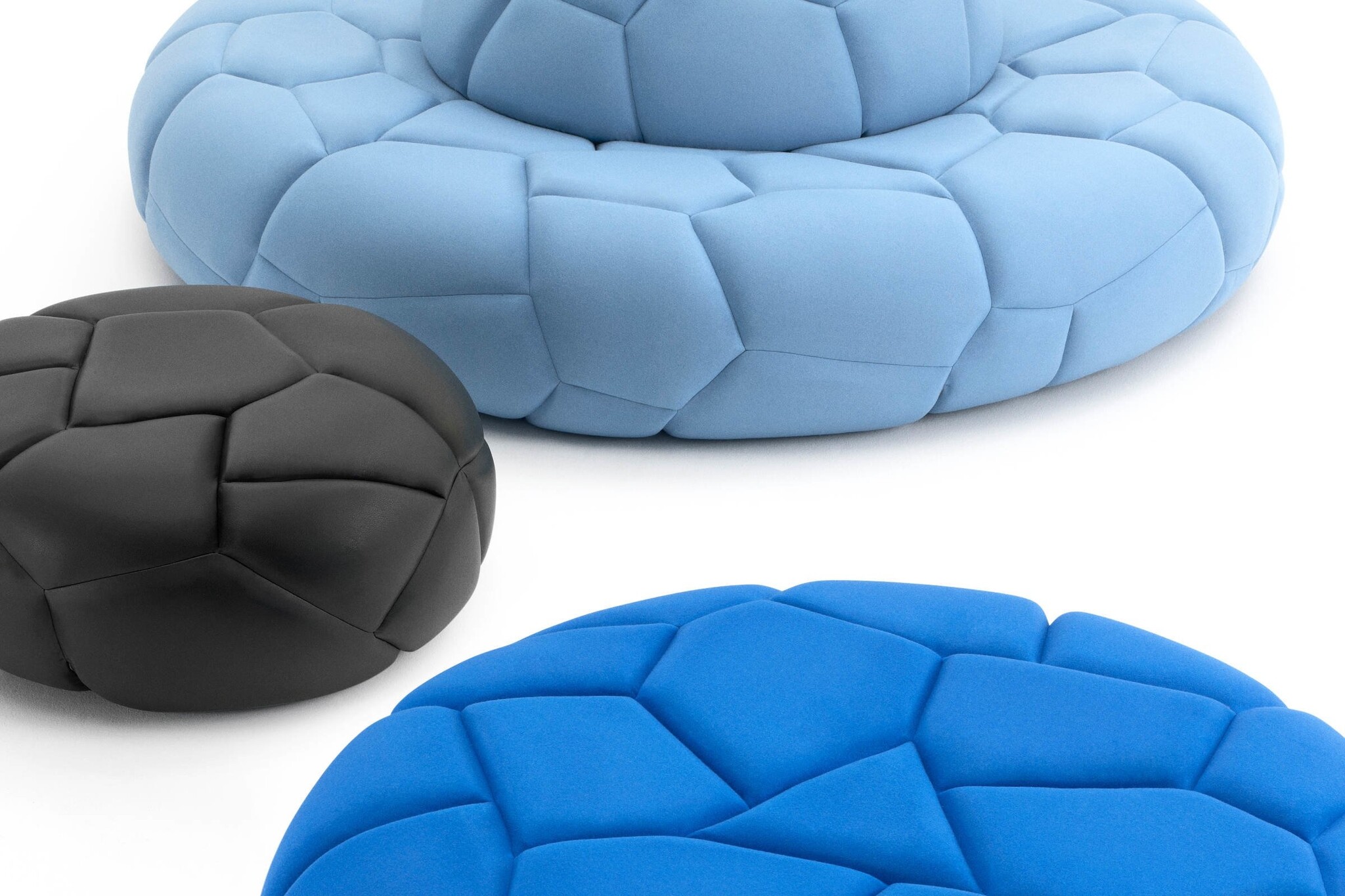+Halle 4 Bubbles zijn zitelementen leverbaar in drie verschillende afmetingen. Bubbles is leverbaar als poef maar ook als grote ontvangst bank voor in bijvoorbeeld het entree van uw bedrijf. De zithoogte is 40 cm en de keuze in kleur is zeer ruim.