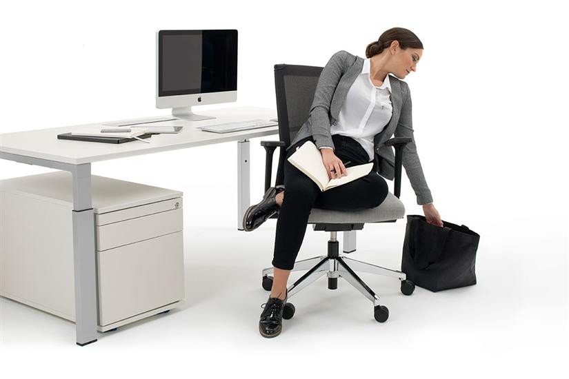 De Haworth Dynaflex bureaustoel is in hoogte en diepte te verstellen.