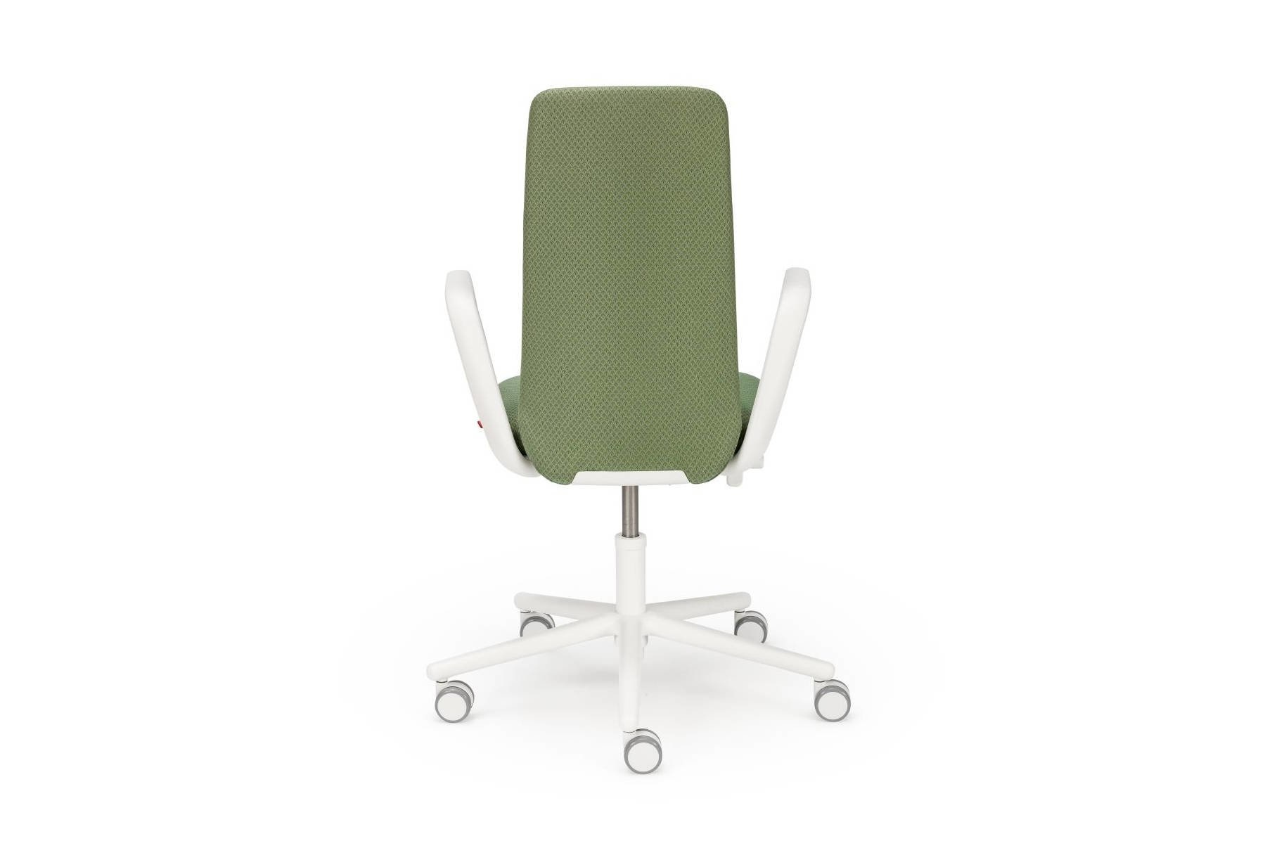 De vaste armleuningen en zitschaal zijn gemaakt van plastic. Het is ook mogelijk om de Nia te bestellen zonder armleuningen en zonder rugondersteuning.