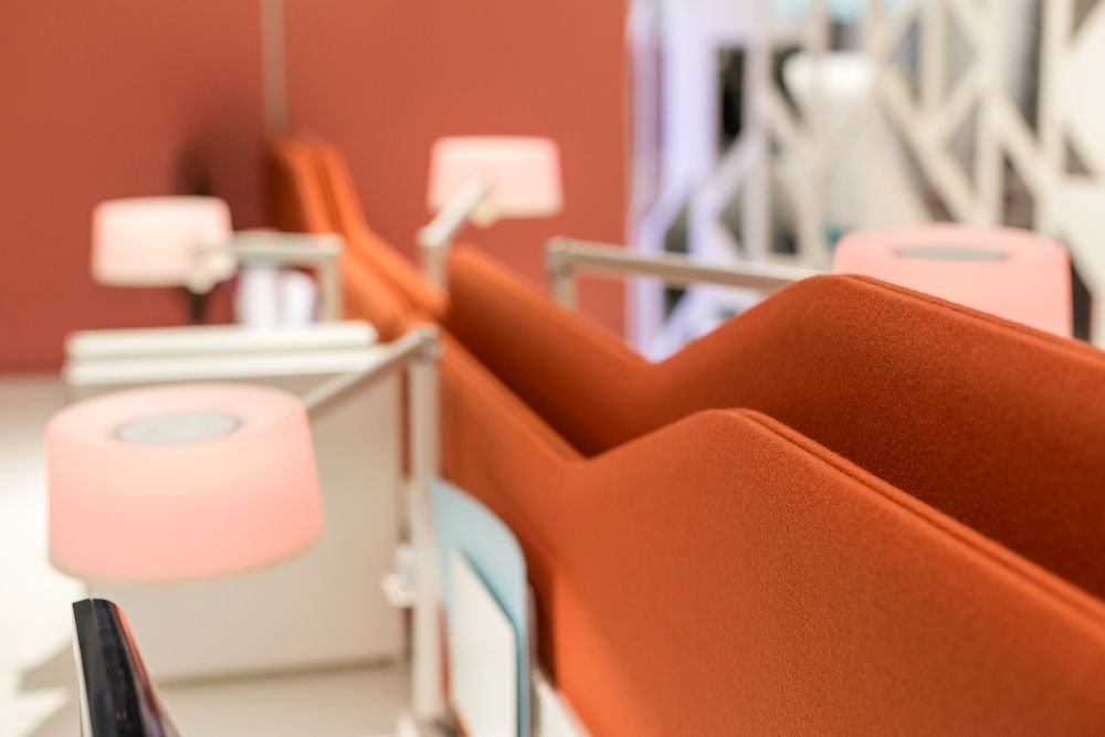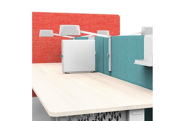 Het Haworth YourPlace bureausysteem is ontworpen om de individualiteit van de gebruiker weer te geven door speels met kleuren van de akoestische schermen te spelen Voor elk wat wils