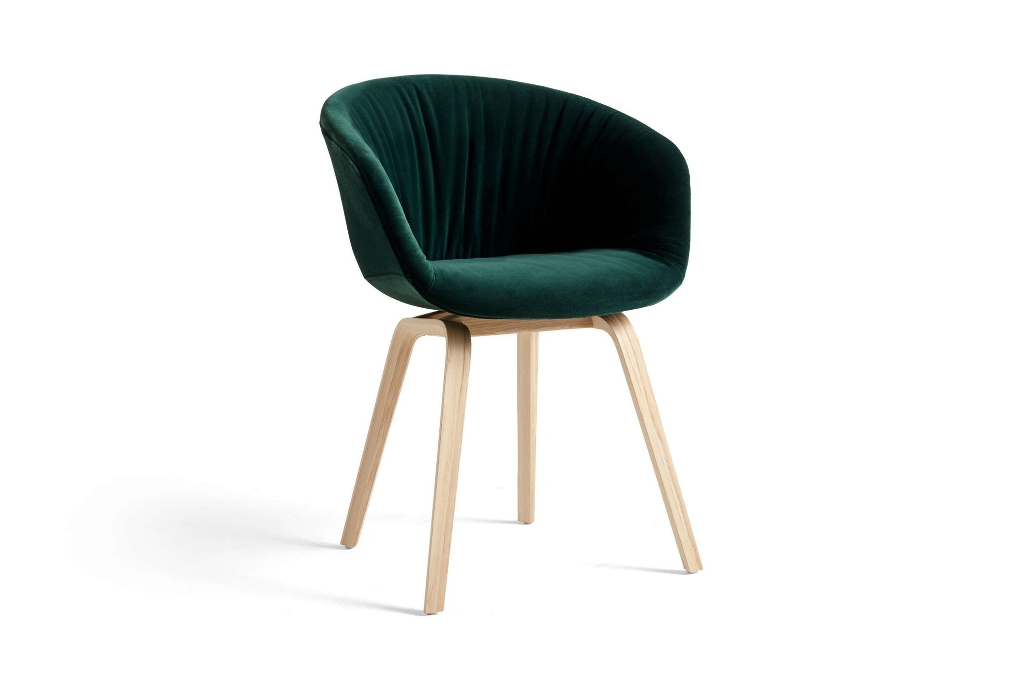 De HAY About A Chair Soft is de bekende About A Chair (AAC) collectie, maar dan met een volledig gestoffeerde zachte zitschaal. Vandaar ook de naam Soft. De stoel is verkrijgbaar in verschillende onderstellen, zoals in hout, aluminium of staal en talloze bekledingsopties.Veelzijdig toepasbaar
