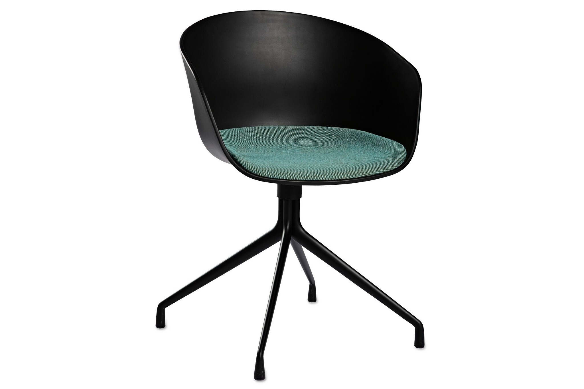 Hay AAC21: gestoffeerde zitschaal met armleuningen en draaibare stervoet.