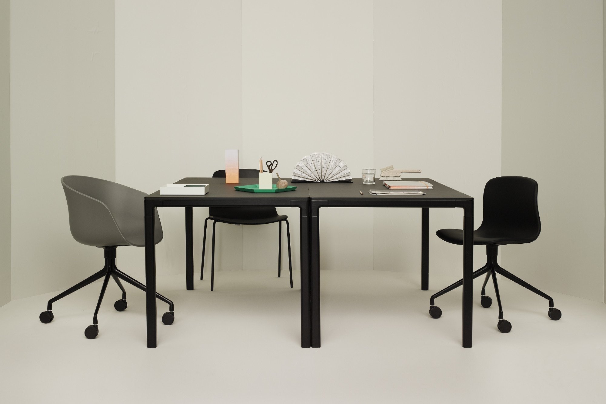 De HAY T12, ook bekend als Table 12 is een tafel met een strakke en slanke vormgeving en afgeronde hoeken. Door de minimalistische uitstraling past de tafel binnen elke omgeving, zoals in uw vergaderruimte als grote vergadertafel of in uw bedrijfsrestaurant of andere horecagelegenheid. De tafel biedt genoeg plek om met uw collega’s te vergaderen of te lunchen of even aan te schuiven. We zien steeds vaker in kantoorinrichtingen dat tafels gebruikt worden om even iets te bespreken of even aan te werken. Je klapt je laptop open en kan meteen aan de slag aan de HAY Table 12. Fundamenteel voor het ontwerp van de HAY T12 tafel zijn de poten die in de hoeken zijn geplaatst om zo zoveel mogelijk mensen en een optimale ruimte te bieden. Kenmerken HAY Table 12