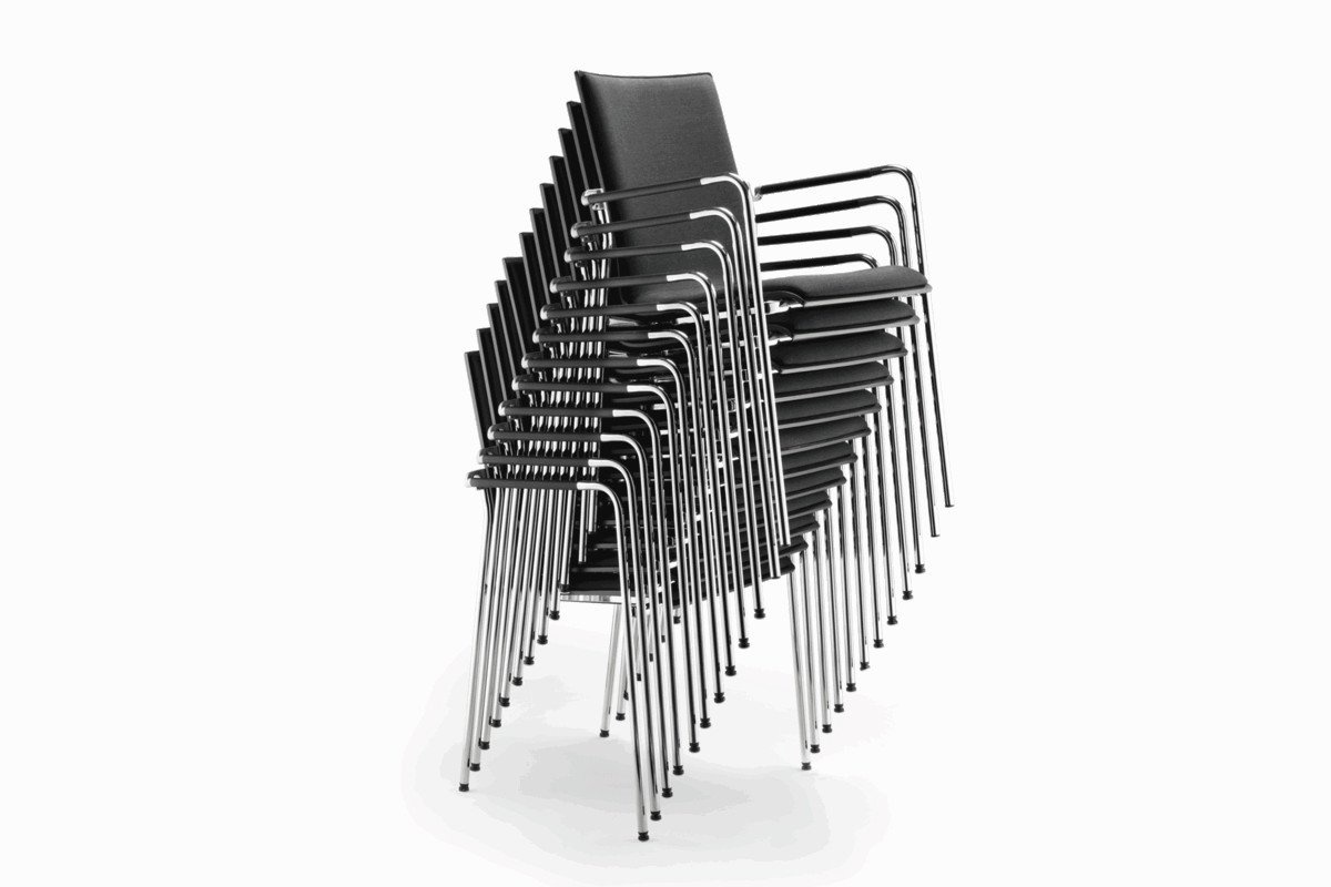 Zeer makkelijk te koppelen en te stapelen stoel, dit door de slimme armleggers. Kuip specifiek voor uw toepassing aan te passen, geheel van hout of met een gestoffeerde zit zitting en rug en geheel gestoffeerd, dus altijd een oplossing zoals u dat wilt. De Hiller Arketto is stapelbaar tot maximaal 12 stuks. Gebruikte materialen Hiller Arketto stapelbare stoelen