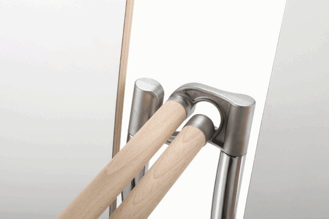 151: ronde stalen buis met een diameter van 18 mm, hout inleg massief beukenhout armsteun