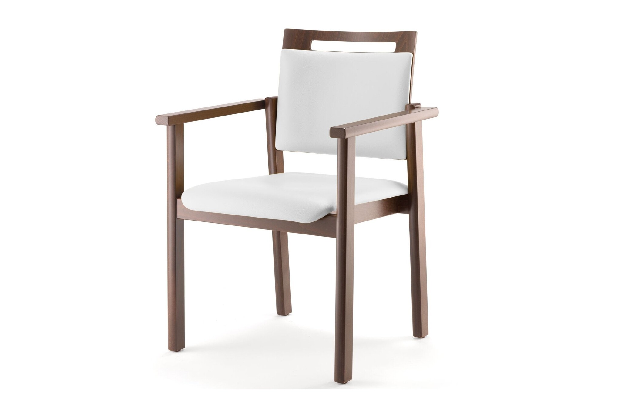 Hiller Ronde is te leveren met en zonder armleggers. Het veelzijdige programma van robuust massief hout, maar ook van elegant verjongt hout biedt volop mogelijkheden. Elke stoel is naar eigen inzicht te stofferen en te beitsen. Ook is er een bijbehorend tafelprogramma Hiller 410.