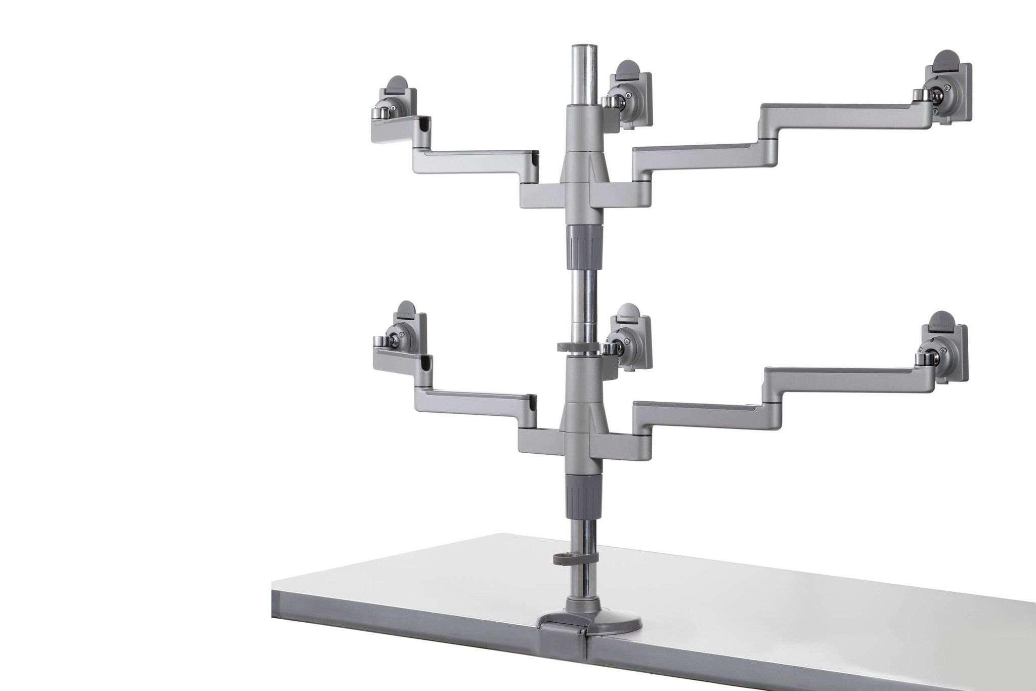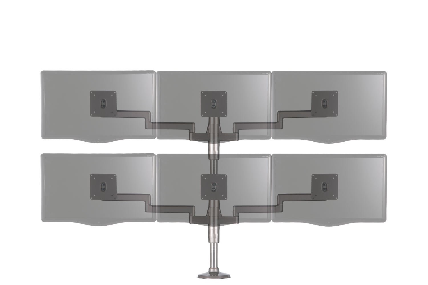 Deze monitorarm is erg functioneel. Een voorbeeld is dat hij maar liefst 6 monitoren kan ophangen in diverse vormen. Zo kunt u 3 monitoren boven 3 monitoren vestigen waardoor u nu 6 schermen heeft. Ook is het mogelijk om 3 schermen naast elkaar te installeren. Er zijn in ieder geval vele opties mogelijk om deze monitoren naar eigen wens te vestigen. Daarnaast is de arm in drie kleuren te leveren, wat ervoor zorgt dat hij goed bij uw interieur aansluit.