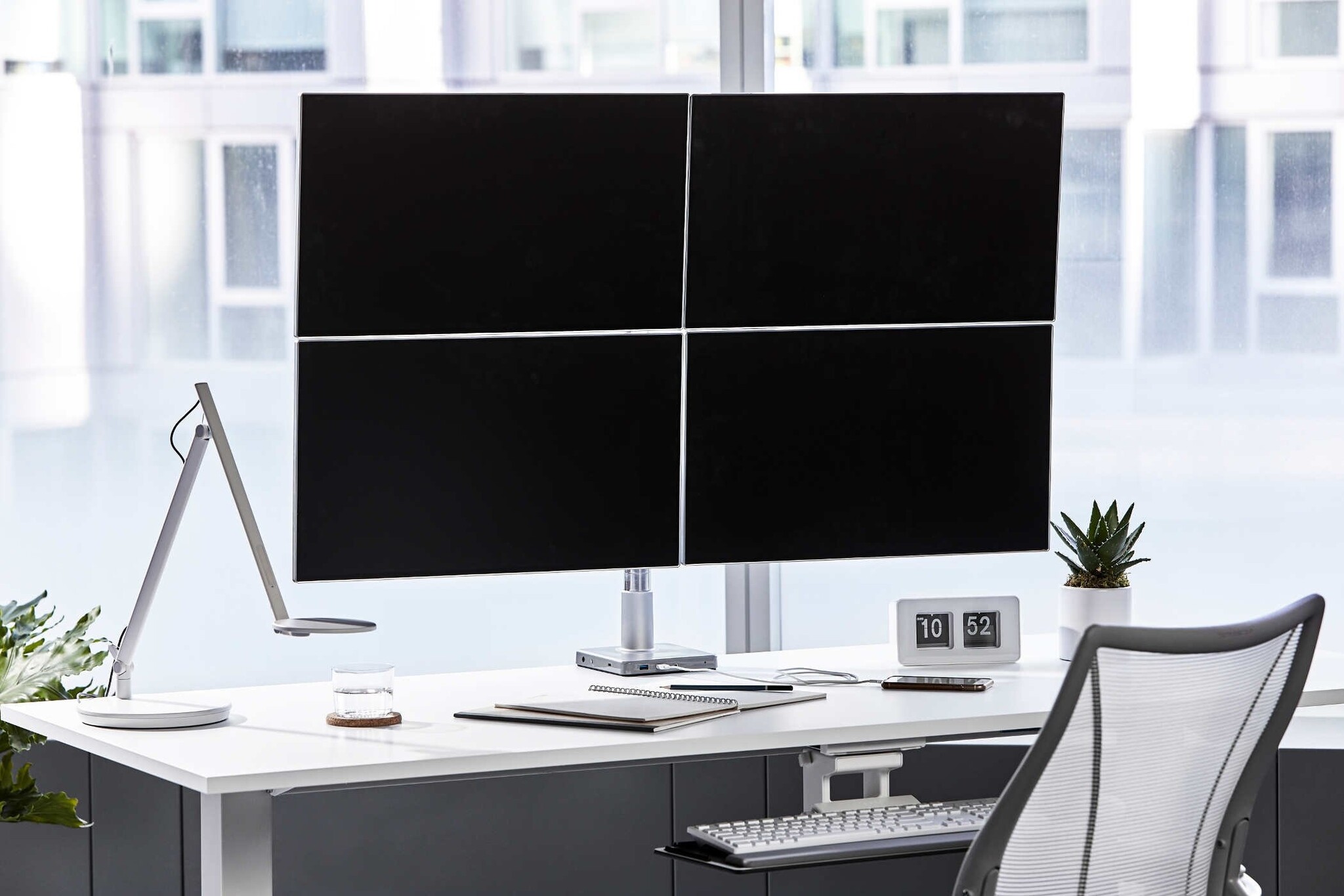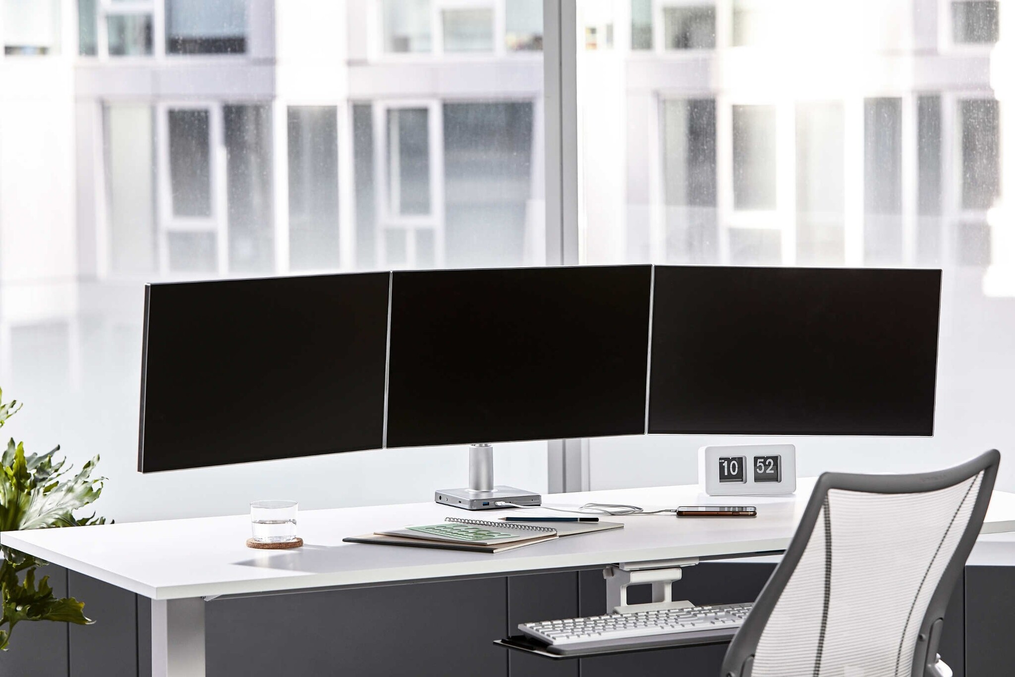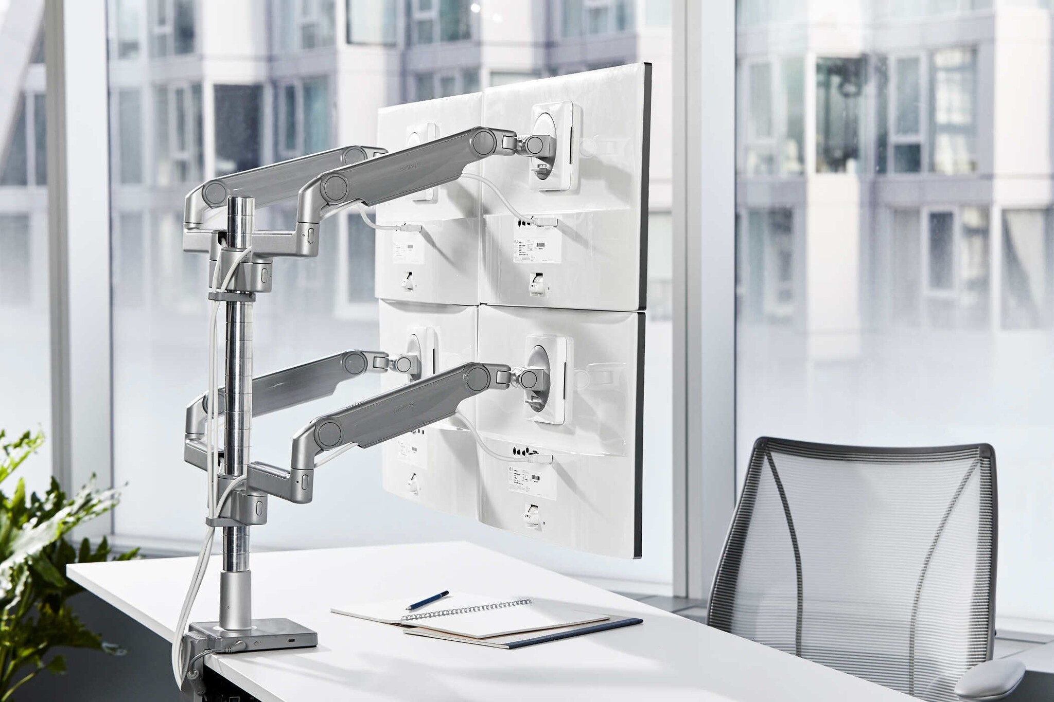 De Humanscale M Flex Monitorarm is een flexibele monitorarm die handig is in diverse ruimtes en in vele mogelijkheden te gebruiken is. Het intelligente ontwerp voorziet de mogelijkheid om opstellingen van meerdere beeldschermen moeiteloos samen te stellen en indien nodig op locatie om te bouwen en aan te vullen zonder dat u bestaande apparatuur af moet afkoppelen. Diverse mogelijkheden met de Humanscale M Flex Monitorarm